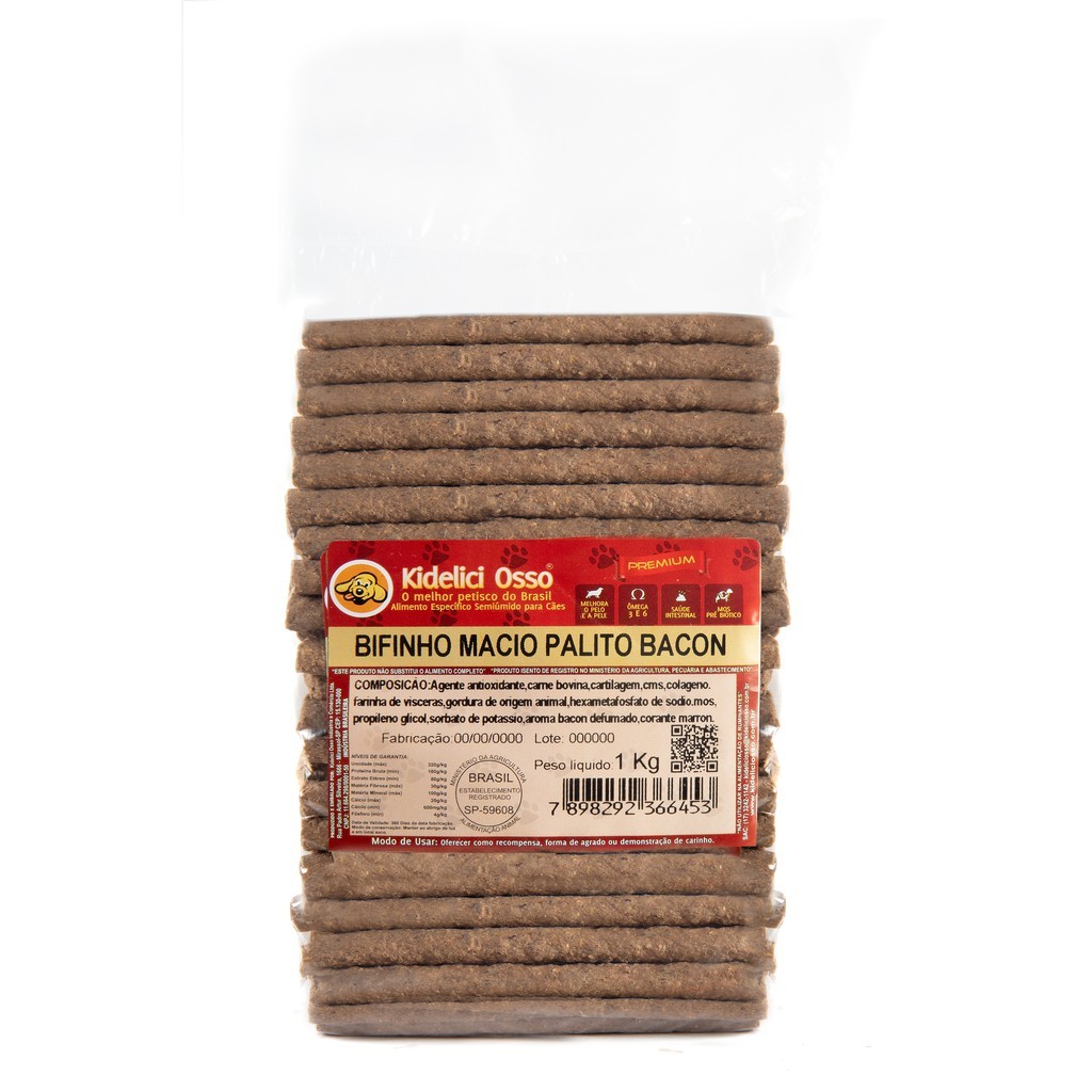 Bifinho Macio Palito - Kidelici Osso - Sabor Bacon - 1 Kg