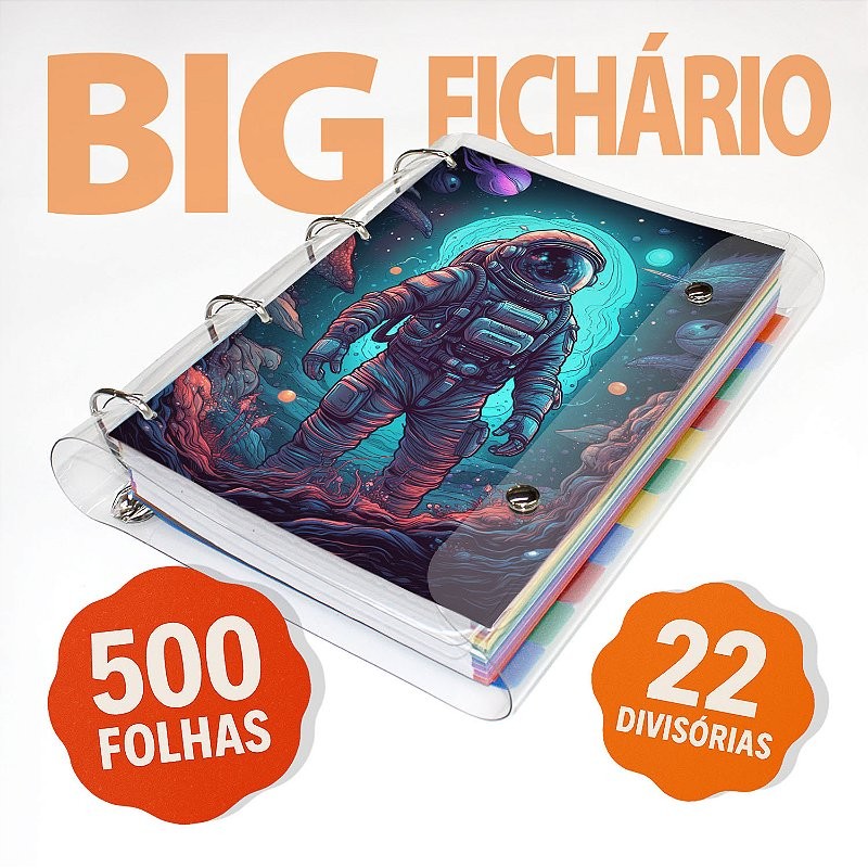 Big Fichário Universitário 500 folhas + 22 divisórias Astronauta