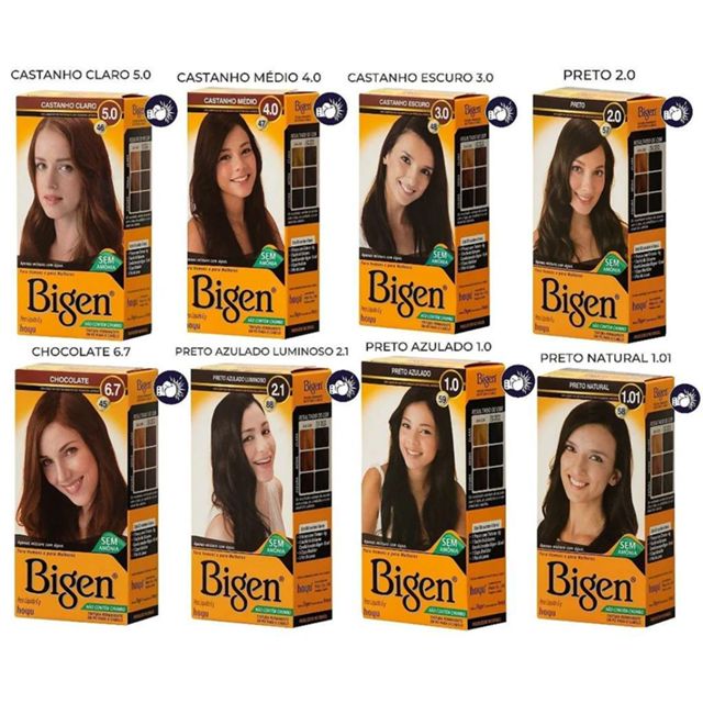 | Kit Profissional Tintura Capilar à base de água Bigen 5.0 Castanho ... | R$ 45,90 | — | 5.0/5 | 3 |