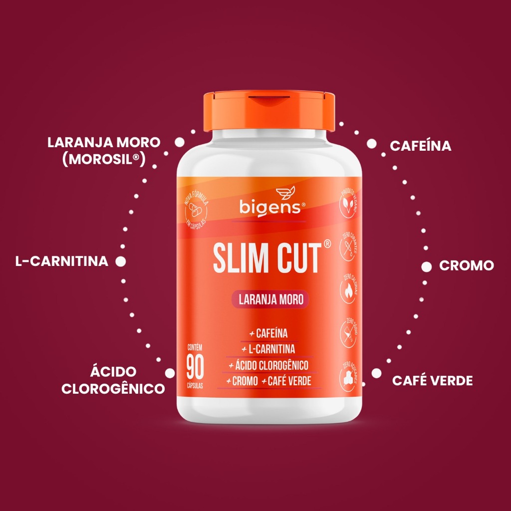 SLIM CUT TERMOGÊNICO 30 COMPRIMIDOS Descubra o poder do Slim Cut, um termogênico avançado que, além de combinar ingredientes eficazes para impulsionar seus objetivos , também oferece uma experiência agradável e fácil de incluir em sua rotina diária. Com esta fórmula inovadora, você poderá aproveitar os benefícios de ingredientes como Extrato de Laranja Moro (MOROSIL®), Extrato de Café Verde em pó e L-Carnitina, com alta biodisponibilidade e eficácia. BENEFÍCIOS: • A CAFEÍNA AUXILIA NO AUMENTO DO ESTADO DE ALERTA. • A CAFEÍNA AUXILIA NA MELHORA DA CONCENTRAÇÃO. • A CAFEÍNA AUXILIA NO AUMENTO DA CAPACIDADE DE RESISTÊNCIA E NO DESEMPENHO DE EXERCÍCIOS FÍSICOS. • O CROMO AUXILIA NO METABOLISMO DE PROTEÍNAS, CARBOIDRATOS E GORDURAS. • O CROMO AUXILIA NA MANUTENÇÃO DE NÍVEIS NORMAIS DE GLICOSE NO SANGUE Morosil® é um extrato patenteado obtido a partir do suco das laranjas vermelhas Moro (Citrus sinensis (L.) Osbeck). Essa variedade de laranja é cultivada principalmente na área em torno do vulcão na Sicília, Itália. As laranjas Moro apresentam uma coloração vermelha intensa devido à presença de antocianinas, um tipo de flavonoide com propriedades antioxidantes. Estudos indicam que o Morosil® pode ser muito benéfico para a saúde. Além disso, suas propriedades antioxidantes podem proteger as células contra danos causados pelos radicais livres e promover a saúde geral. *É importante ressaltar que, embora o Morosil® possa oferecer benefícios, ele não substitui uma alimentação equilibrada e um estilo de vida saudável. INGREDIENTES: Extrato de Laranja Moro (MOROSIL®), Extrato de Café Verde em pó, Cafeína Anidra, L-Carnitina, Extrato de Semente de Uva, Spirulina, Chlorella, Picolinato de Cromo. Estabilizante (Fosfato de Dicálcio – INS 341ii), Estabilizante (celulose microcristalina – INS 460i), Estabilizante (Polivinilpirrolidona- INS 1202), antiumectante (dióxido de silício – INS 551), lubrificante (estearato de magnésio - INS 470i) e Revestimento: Veículos (Álcool Etílico, Água Purificada e Polietilenoglicol). Estabilizante (Hidroxipropil- metilcelulose-INS 464) e Corantes (opacificante INS 171, Corante Vermelho 40 – INS 129). NÃO CONTÉM GLÚTEN SUGESTÃO DE USO: Adultos ≥ 19 anos, ingerir 1 (um) ou 2 (dois) comprimido(s) 30 minutos antes da principal refeição. ou conforme a orientação de médico ou nutricionista. CUIDADOS DE CONSERVAÇÃO: Conservar este produto bem fechado, em lugar fresco, seco e ao abrigo da luz. Após aberto consumir em até 30 dias. Suplemento Alimentar dispensado de registro conforme Resolução RDC nº 240/2018.
