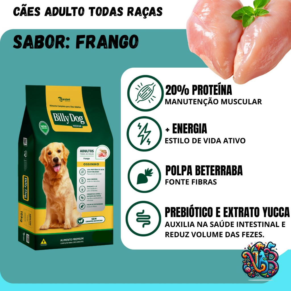 | Billy Dog Ossinho Ração Premium Cães Adultos Frango 7kg este produto | R$ 48,80 | 56% | 4.9/5 | 95 |