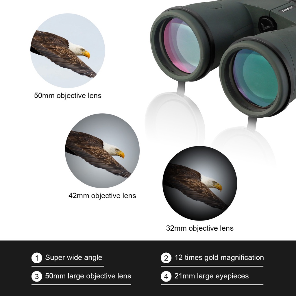 Binóculos SVBONY SA203 HD 12x50 FMC BAK4 IPX7 Telescópio À Prova D'água Cheio De Nitrogênio Para Caminhadas , Acampament