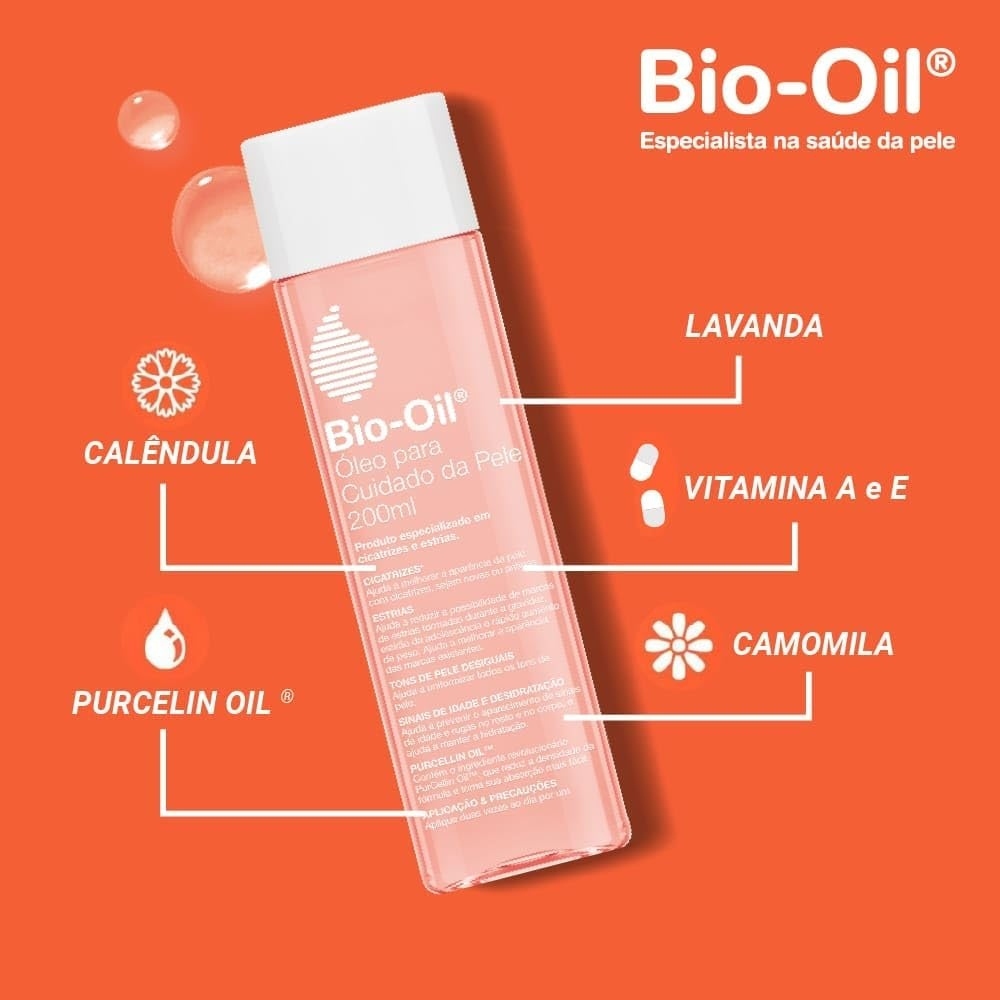 Bio Oil Óleo para Cuidado da Pele 125ml O Bio Oil Óleo para Cuidado da Pele 125ml é um produto natural e eficaz para melhorar a aparência da pele. Este óleo é especialmente formulado para ajudar a reduzir estrias, cicatrizes, manchas de hiperpigmentação e sinais de envelhecimento, como linhas de expressão e rugas. Principais Características: - 100% Natural: Sem adição de fragrâncias, ideal para peles sensíveis. - Hipoalergênico: Seguro para uso diário. - Versatilidade: Adequado para todos os tipos de pele. Benefícios: - Melhora a aparência de estrias e cicatrizes. - Reduz manchas de hiperpigmentação. - Diminui sinais de envelhecimento, como linhas de expressão e rugas. - Deixa a pele mais macia e hidratada. Diferenciais do Produto: - Fórmula Avançada: Ingredientes naturais que promovem a regeneração e a hidratação da pele. - Sem Fragrâncias: Perfeito para peles sensíveis e alérgicas. - Eficácia Comprovada: Muitos usuários relatam resultados positivos após o uso regular. Especificações Técnicas: - Peso: 125ml. Instruções de Uso: Aplique uma pequena quantidade do óleo nas áreas afetadas, massageando suavemente até ser completamente absorvido. Use duas vezes ao dia, pela manhã e à noite, para melhores resultados. Avisos e Precauções: - Uso externo apenas. - Evite contato com os olhos. Em caso de contato, lave abundantemente com água. - Manter fora do alcance de crianças. - Em caso de irritação, suspenda o uso e consulte um dermatologista. O que está incluso? - 1 Bio Oil Óleo para Cuidado da Pele 125ml. ---- DÚVIDAS FREQUENTES Os produtos são originais? Sim. Todos os nossos produtos são originais. Emitem nota fiscal? Sim. Emitimos nota fiscal para todos os pedidos.