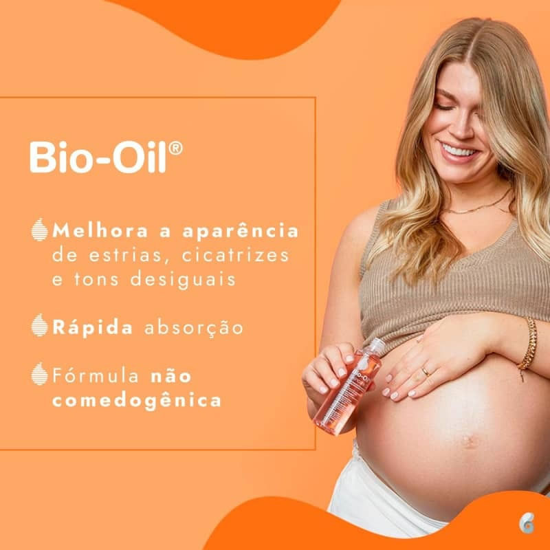O Bio-Oil Óleo Restaurador Antiestrias 125ml para corpo e rosto, que oferece cuidados especiais com a pele, ajudando a melhorar a aparência da pele com cicatrizes, estrias, tons de pele desiguais, sinais de idade e desidratação. Sua fórmula rica em extratos de plantas e vitaminas, suspensa numa base de óleo, nutre e hidrata profundamente a pele, com uma textura leve e não gordurosa, assegurando que os benefícios das vitaminas e dos extratos de plantas sejam facilmente absorvidos. Benefícios: - Melhora a aparência de estrias e cicatrizes; - Melhora a aparência dos tons de pele desiguais; - Hidrata, melhora a textura, o tom e a aparência de linhas finas e rugas; - Ajuda a restaurar a função da barreira de retenção da umidade. Modo de usar: Aplique Bio-Oil duas vezes ao dia sobre a área afetada, massageando suavemente em movimentos circulares até a completa absorção do produto. Em cicatrizes, estrias e tons de pele desiguais, o produto deve ser aplicado durante um mínimo de 3 meses. Durante a gestação, deve ser aplicado desde o início do segundo trimestre em áreas que sejam propensas a estrias, tais como o abdômen, seios, costas, quadris, glúteos e coxas.