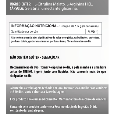 Arginina + Citrulina 500mg 60 / 90 / 120 Cápsulas - Suplemento Alimentar Natural natuverdemax Somos Distribuidores Oficiais de diversas marcas de Excelência e Qualidade! Nosso Objetivo de garantir satisfação total de nosso cliente, com produtos de Excelência e Qualidade para o seu dia a dia, buscando sempre proporcionar a melhor experiência tanto nos produtos quanto no atendimento. Sua satisfação também é a nossa! Todos os produtos acompanham NOTA FISCAL, e nós garantimos sua PROCEDÊNCIA! Agradecemos a visita e esperamos que volte mais vezes. IMPORTANTE: Produto autorizado para comercialização em todo o território nacional através do anexo I da RDC 240/2018, em conformidade com a RDC 27/2010 e RDC 23/2000 da ANVISA. VALIDADE DO PRODUTO As validades dos produtos até 24 meses! INGREDIENTES: BioGemas ArgininCaps CitrulinCaps - natuverdemax NÃO CONTÉM GLÚTEN 60 cápsulas 90 cápsulas 120 cápsulas Contém 500 mg por cápsula. Consumir uma cápsula três vezes ao dia, 1 Cápsula antes das refeições.