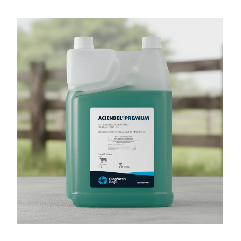 Espécies: bovinos, caprinos, equinos e ovinos. Ectoparasiticida. Aplicação: pour on. Antiparasitário. Bernicida, carrapaticida e mosquicida para bovinos, equinos, caprinos e ovinos. Aciendel Premium é um antiparasitário externo à base de Cipermetrina, Clorpirifós e Butóxido de Piperonila. Suas características mais importantes são: grande poder inseticida, persistência da ação antiparasitária e repelência, o que confere um prolongado poder residual. Indicado para o controle e tratamento dos bernes, carrapatos, mosca-dos-chifres, sarnas, piolhos e outros insetos sugadores. Carência leite: somente deve ser destinado ao consumo humano, 06 horas após a última aplicação do produto. Carência abate: somente deve ser realizado 02 dias após a última aplicação do produto. ENVIAMOS IMEDIATO!!! TEMOS O PRODUTO A PRONTO ENTREGA!!!!