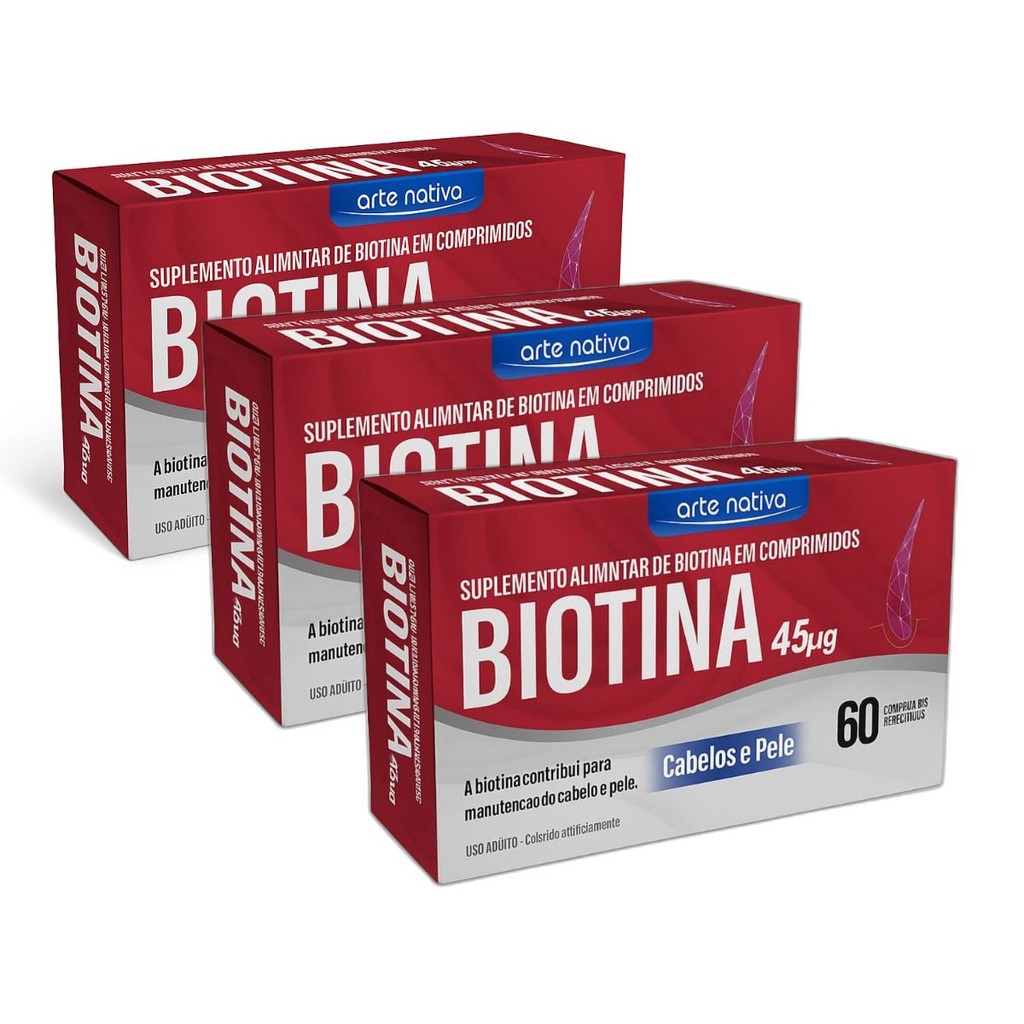 A Biotina é um suplemento alimentar à base de vitamina B7, essencial para o metabolismo energético e para a manutenção da saúde da pele, cabelos e unhas. Benefícios da biotina: • Fortalece e estimula o crescimento capilar • Melhora a firmeza e a hidratação da pele • Fortalece unhas quebradiças e frágeis • Auxilia na produção de energia celular • Contribui para o bom funcionamento do sistema nervoso; RECOMENDAÇÃO DE USO: GRUPO POPULACIONAL ≥19 anos: Consumir 1 (um) comprimido ao dia.
