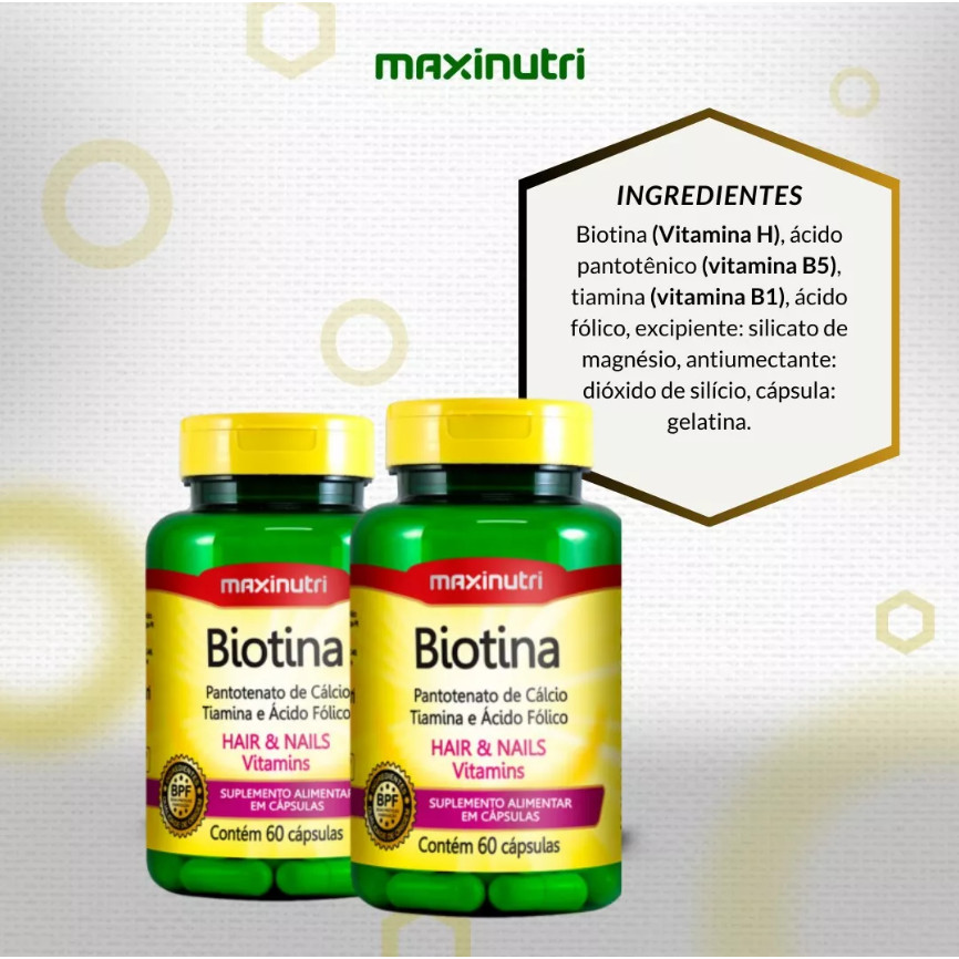 Biotina Cabelo Unhas E Vitaminas + Acido Fólico 60 Cáps Maxinutri