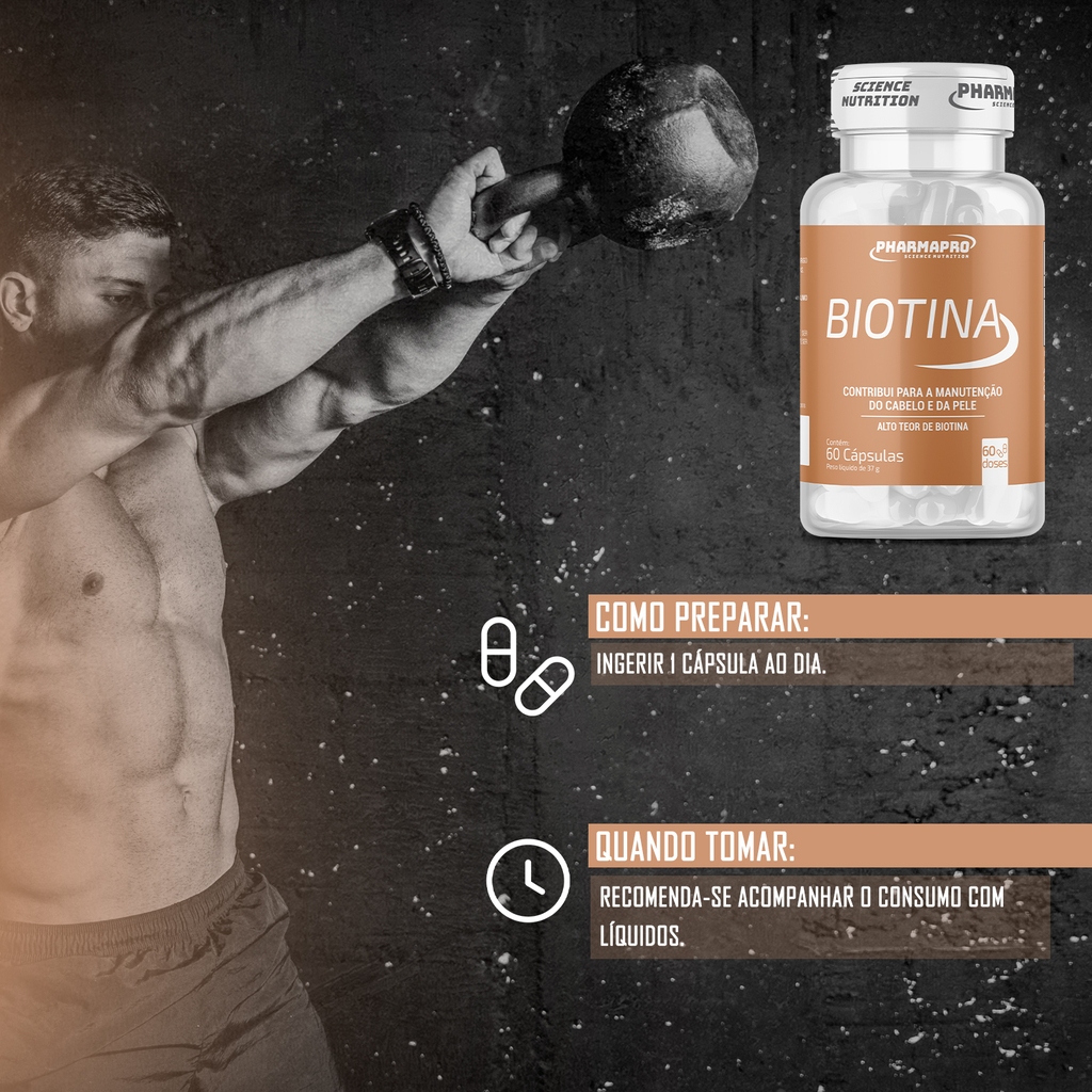 Biotina Pharma Pro – 60 Cápsulas A Biotina Pharma Pro é um suplemento alimentar formulado com alta concentração de biotina (vitamina B7), nutriente essencial para a manutenção da saúde dos cabelos, da pele e das unhas. Desenvolvida para quem busca cuidado diário de dentro para fora, sua fórmula atua diretamente no metabolismo celular, auxiliando nos processos naturais de fortalecimento e renovação do organismo. A biotina é amplamente reconhecida por seu papel na produção de queratina, proteína fundamental para a estrutura capilar e resistência das unhas, além de contribuir para a vitalidade e aparência da pele. O uso contínuo, aliado a uma alimentação equilibrada, favorece cabelos mais fortes, unhas menos quebradiças e uma pele com aspecto mais saudável. Prático e fácil de consumir, o produto é indicado para quem enfrenta sinais de enfraquecimento capilar, unhas frágeis ou perda de viço da pele, sendo uma excelente opção para a rotina de cuidados diários. Principais benefícios: Auxilia no crescimento saudável dos cabelos Contribui para o fortalecimento das unhas Ajuda a manter a pele com aparência mais saudável Apoia a produção natural de queratina e colágeno Suporte nutricional para a beleza e vitalidade Produto indicado para adultos. Deve ser consumido conforme orientação da embalagem, não substituindo uma alimentação equilibrada.