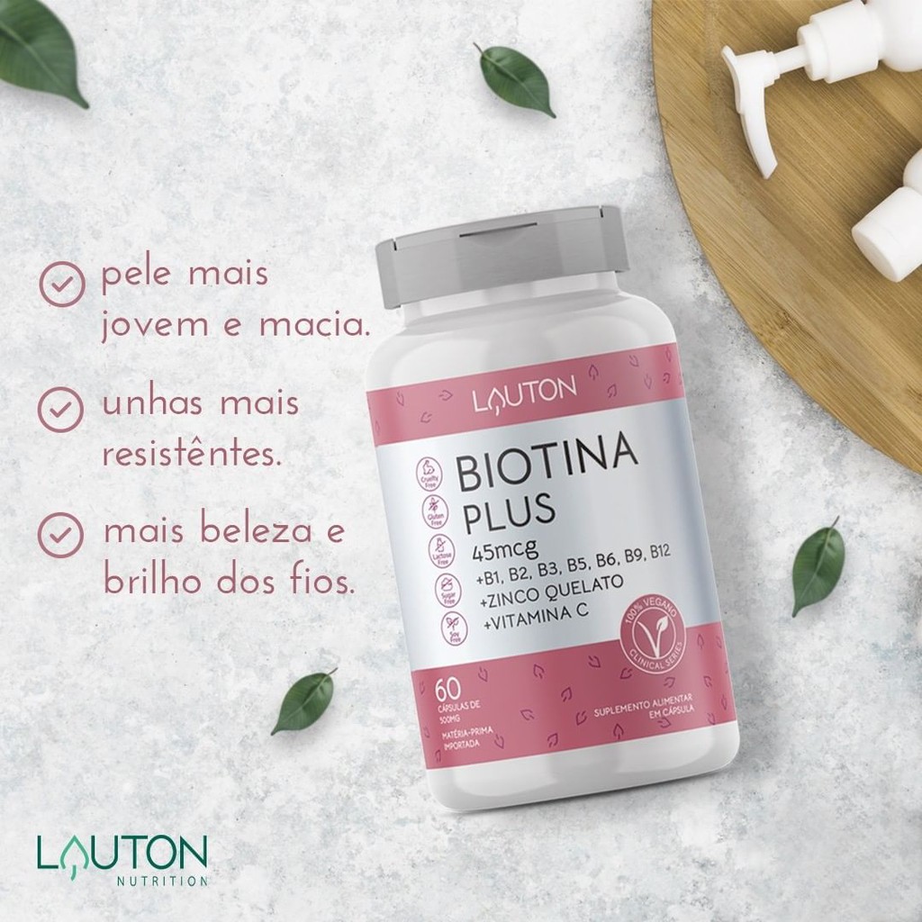 Biotina Premium com Vitaminas do Complexo B, C e Zinco Quelato - Kit 3 potes de 60 Capsulas Concentradas Lauton - Cabelo, Pele e Unha