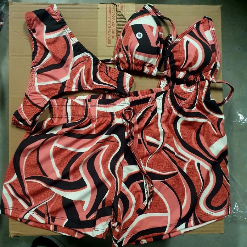 Biquíni com short Moda Praia Feminino com Shorts e Bojo (pode tirar ) - Conjunto Triquíni Verão Plus Size P ao GG