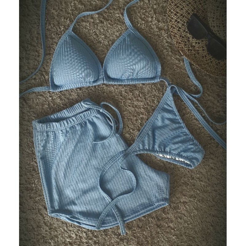 Biquíni Cortininha com Shortinho em Malha Canelada Perfeito para quem busca estilo e conforto nos dias de sol! Nosso biquíni modelo cortininha é confeccionado em malha canelada de alta qualidade, com toque macio e excelente elasticidade. A parte de cima possui modelagem ajustável com amarração no pescoço e nas costas, garantindo um caimento perfeito para diferentes tipos de corpo. Acompanha shortinho no mesmo tecido, que além de dar um charme extra ao look, oferece mais conforto e praticidade para curtir o verão com liberdade. Ideal para praia, piscina ou aquele dia relax com muito estilo.