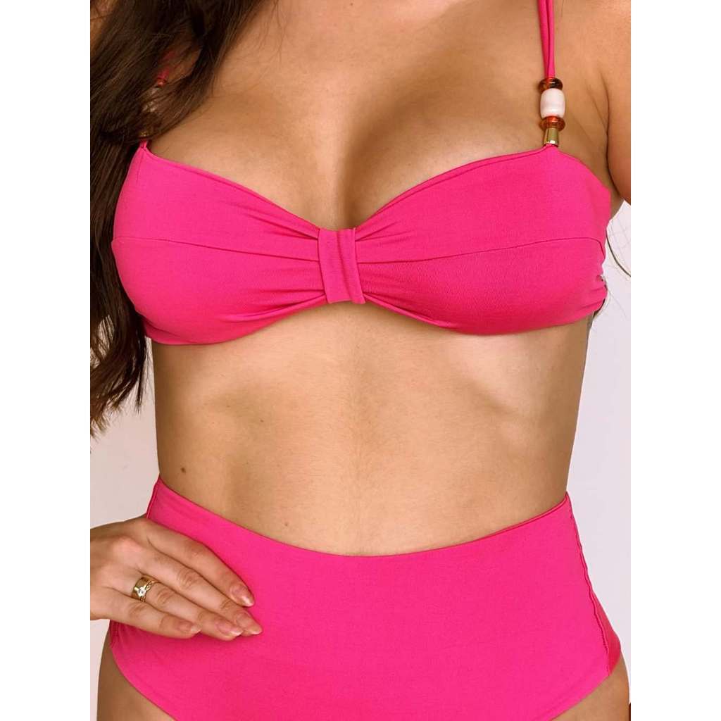 Biquíni Confortável Cintura Alta Hot Pants Bojo Removível e Top detalhe pedraria Look Praia Elegante