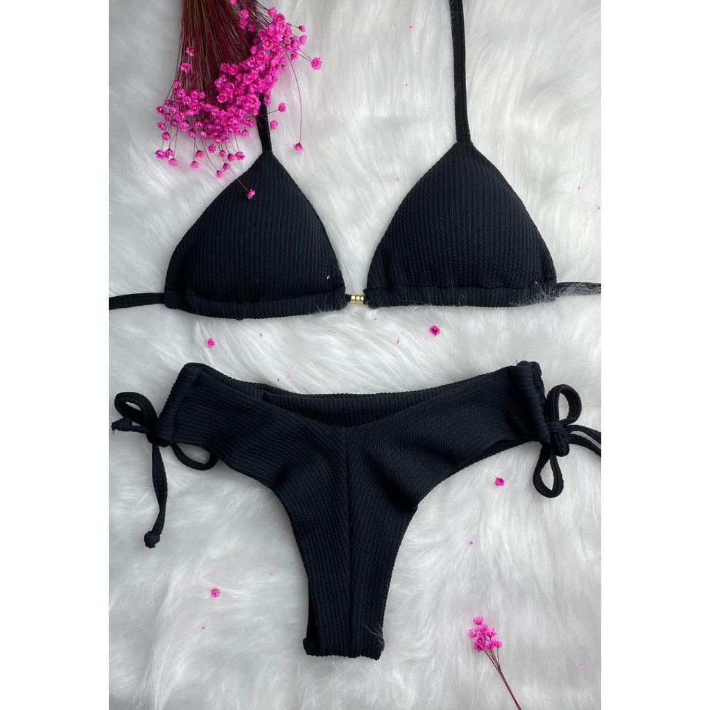 Biquini Cortininha Canelado Calcinha De Amarrar Fio Duplo Com Bojo Removível Texturizado e Ajustável
