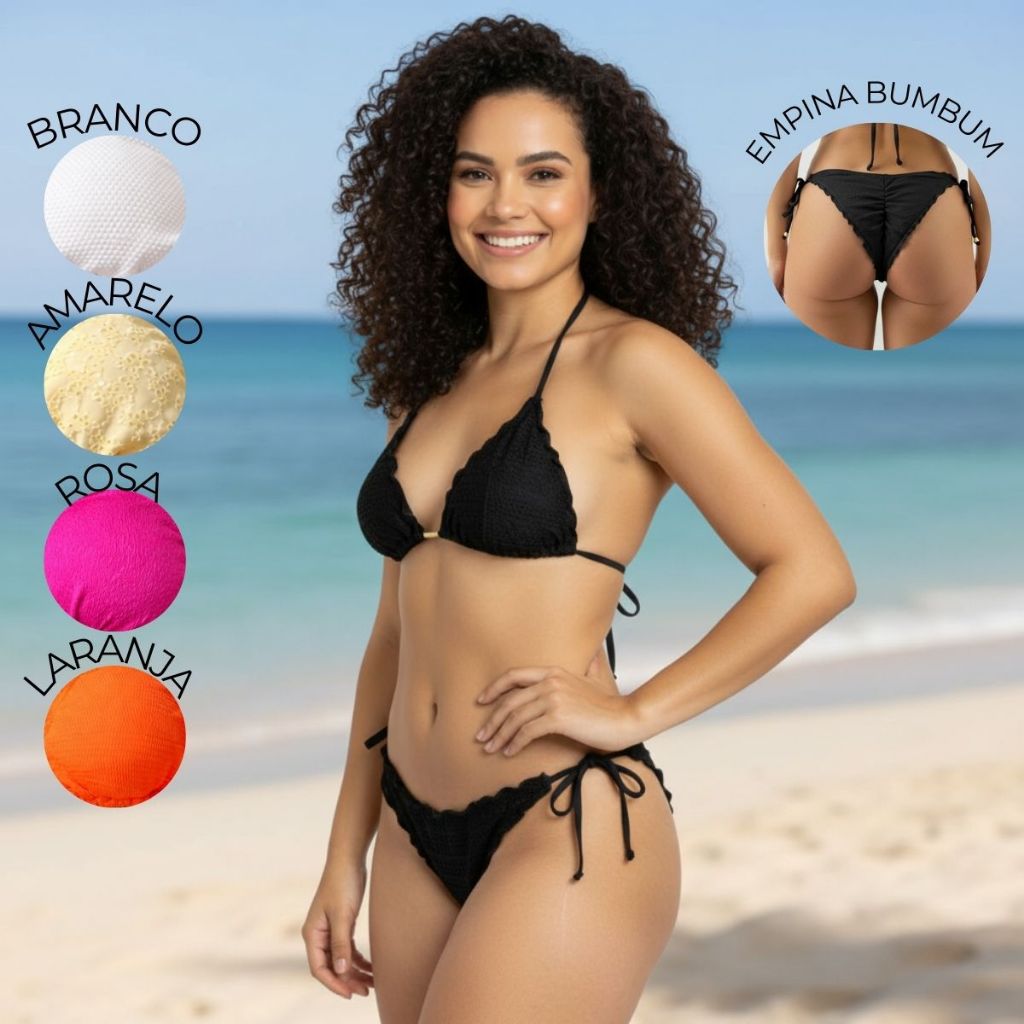 Biquini Cortininha Empina Bumbum Com Bojo Forrado De Amarrar Praia Piscina Férias Verão 2026