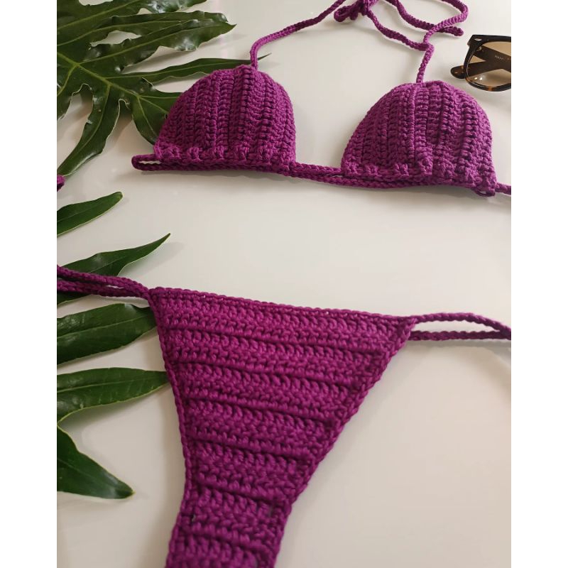 biquíni cortininha Fio dental. Modelo Marquinha 100% algodão amarração lateral. Feito em crochê fio