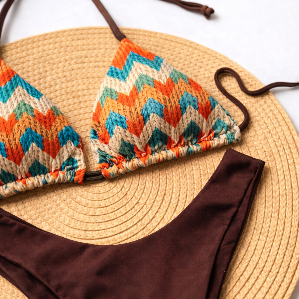 Realce sua beleza com um biquíni moderno, confortável e cheio de estilo. Este biquíni possui estampa zig zag vibrante no top e calcinha marrom lisa, criando um contraste elegante e atual. Ideal para praia, piscina e momentos de lazer no verão. ✔ Design moderno ✔ Caimento confortável ✔ Tecido macio e resistente ✔ Não marca e não fica transparente ✔ Combina com diferentes estilos ✔ Todo o biquini tem elásticos embutidos assim modelando o corpo e trazendo segurança. 🔎 CONSULTE A TABELA ANTES DE COMPRAR: P • Manequim: 36 • Quadril: 87 – 94 cm • Busto: 80 – 88 cm M • Manequim: 38 / 40 • Quadril: 95 – 102 cm • Busto: 89 – 96 cm G • Manequim: 42 • Quadril: 103 – 110 cm • Busto: 97 – 105 cm GG • Manequim: 44 • Quadril: 111 – 118 cm • Busto: 106 – 114 cm 📌 Detalhes do Produto: • Modelo: Cortininha Asa Delta • Estampa: Zig Zag • Cor da calcinha: Marrom • Ajuste: Amarração regulável • Material: Poliéster com elastano • Forro interno • Secagem rápida •Com estampa digital perfeita imitando crochê com bojo removível. 💡 Ideal para quem busca: • Conforto sem abrir mão do estilo • Um biquíni versátil para o dia a dia • Um visual moderno para o verão • Excelente custo-benefício