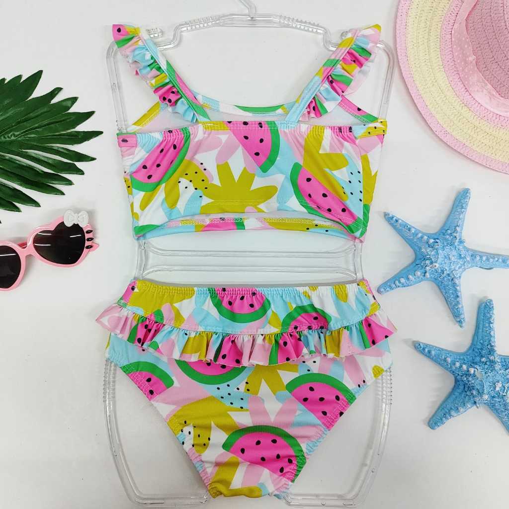 Deixe os dias de sol ainda mais divertidos e estilosos com este lindo biquíni infantil! Com estampas coloridas são perfeitas para praia, piscina ou clube. Detalhes do Produto: - Modelo 2 peças (top + calcinha); - Top estilo cropped com babadinhos nos ombros e laço central super fofo; - Calcinha com babado na cintura para um toque delicado; - Confeccionado em tecido macio e confortável (Suplex); Benefícios: - Secagem rápida - Alta durabilidade - Não desbota facilmente - Super confortável para brincar à vontade Indicação: - Ideal para meninas de 2 até 10 anos.