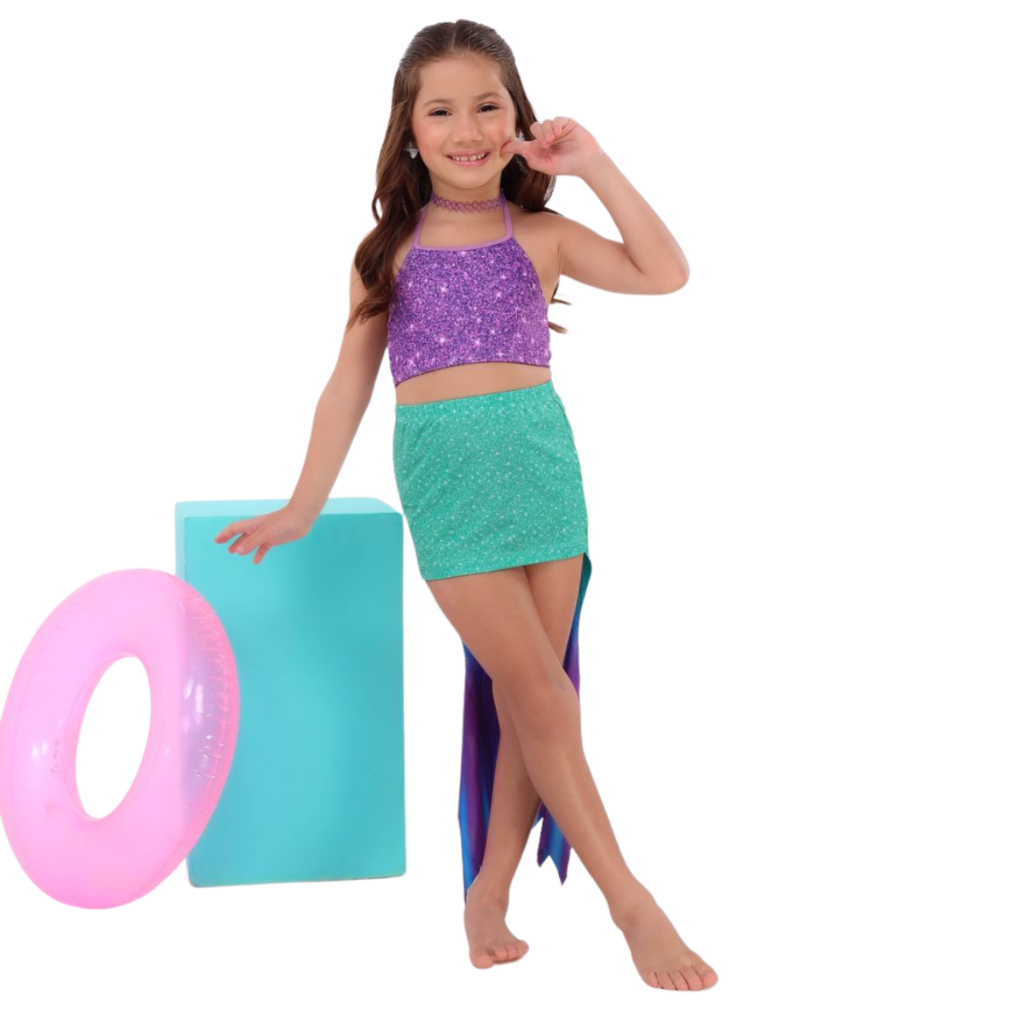 Biquini Infantil Saia Cauda de Sereia Aberta Piscina Mar Tendência 2026 Qualidade Premium