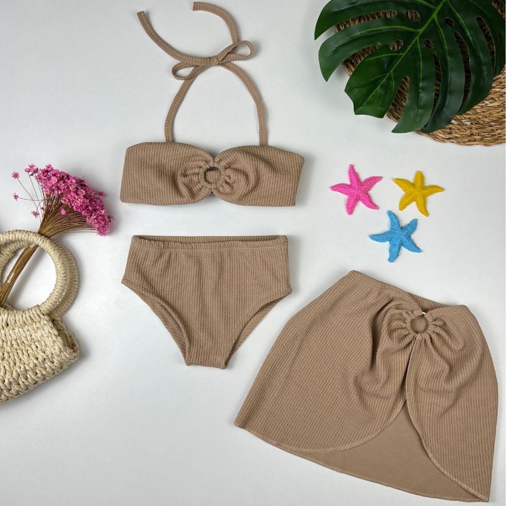 Biquíni Infantil Trijunto 3 Peças Saida De Praia Look Praiano Estiloso Infanto Juvenil Moda Praia