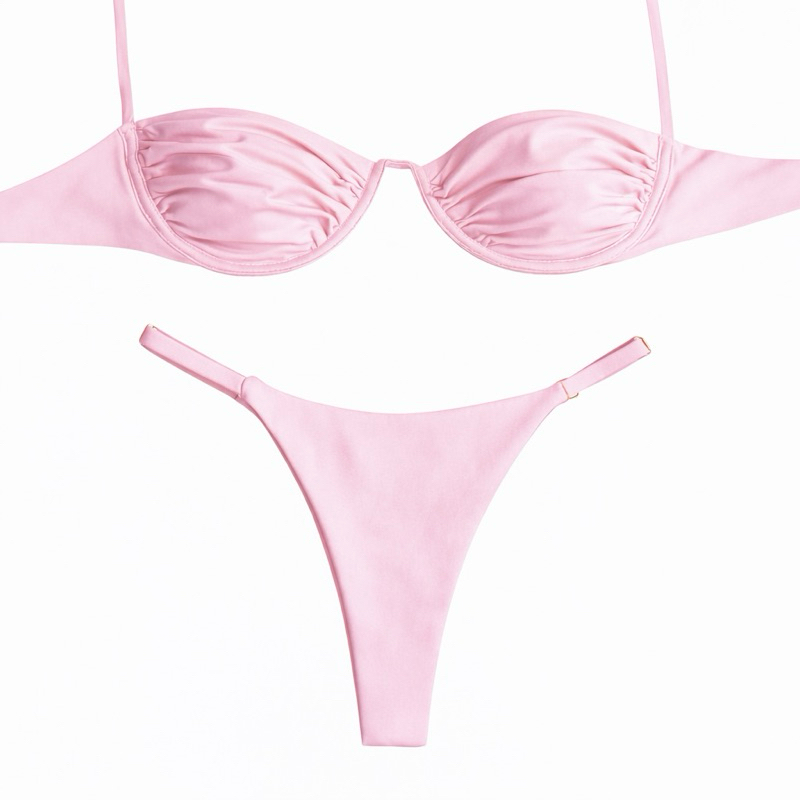 Descubra o equilíbrio perfeito entre sofisticação e funcionalidade com este conjunto de biquíni luxo, desenvolvido para valorizar suas curvas e proporcionar o máximo conforto. A parte superior apresenta um design elegante com franzidos delicados, aro de metal inteiriço que garante sustentação e um ajuste impecável. As alças com regulagem nos ombros e o fecho tipo gancho nas costas permitem personalização e praticidade para qualquer ocasião. A calcinha possui uma modelagem basica, com laterais ajustáveis, que conferem um toque moderno e sensual, além de garantir o ajuste perfeito ao corpo. Confeccionado em tecido de poliamida premium, com costura embutida para maior durabilidade e acabamento impecável, este conjunto é a escolha ideal para quem busca estilo e qualidade em um só produto. Transforme seus dias de sol com o glamour e a exclusividade deste conjunto de biquíni luxo! PP VESTE 36 P VESTE 38 M VESTE 40 G VESTE 42 GG VESTE 44