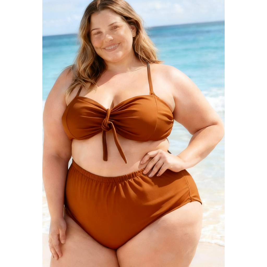 Biquíni Plus Size Cintura Alta Top 2 em 1 Moda Praia Suplex