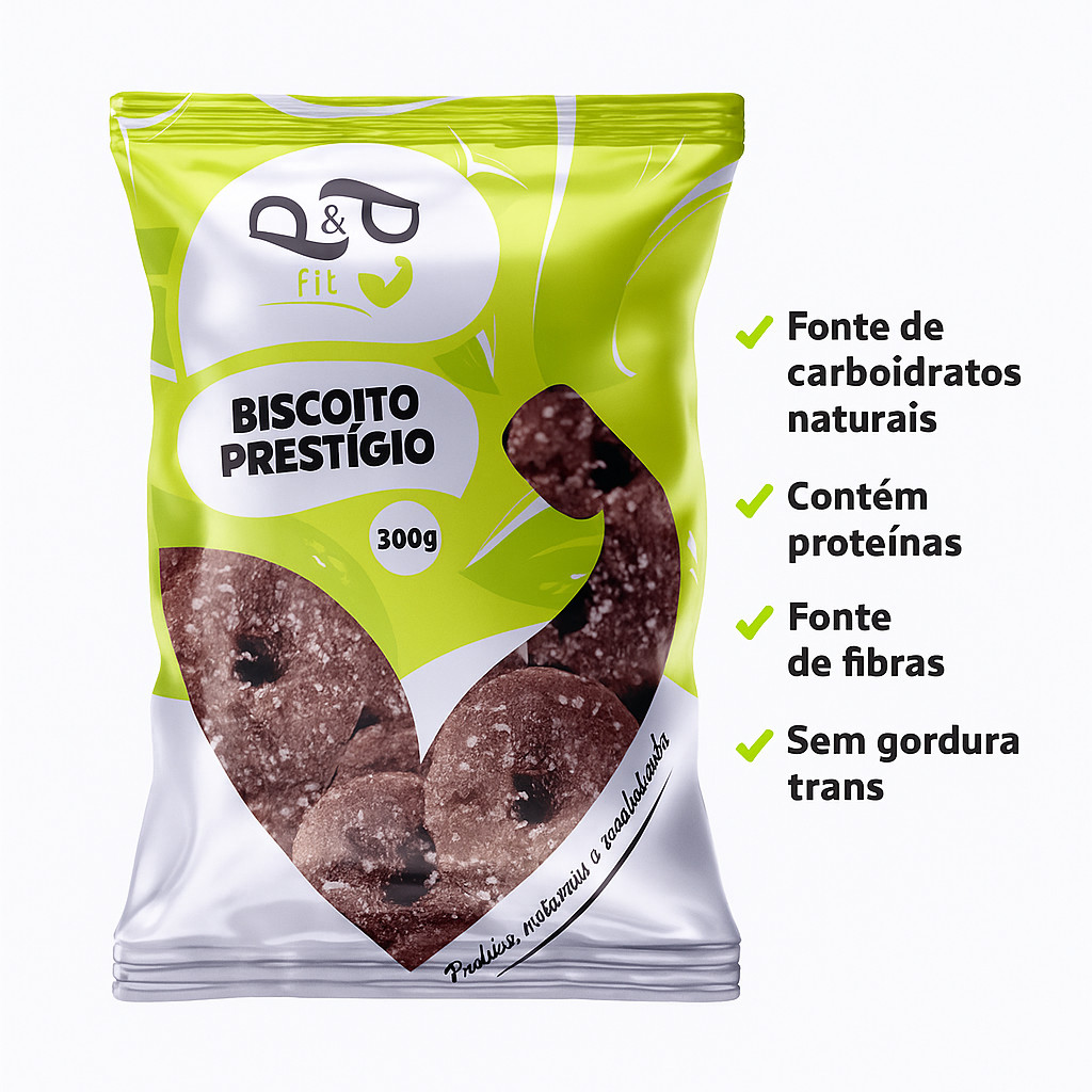 O irresistível sabor do clássico prestígio em uma versão amanteigada e crocante. Esse biscoito combina a textura macia da massa com o toque marcante do coco ralado e chocolate ao leite, criando uma experiência única para o paladar. Ideal para saborear com um café ou presentear com sofisticação. ℹ Benefícios: ✅ Sabor marcante de chocolate com coco ✅ Textura amanteigada suave ✅ Ingredientes selecionados com qualidade ✅ Fonte de proteínas ✅ Sem gordura trans ✅ Perfeito para momentos especiais ℹ Ficha Técnica: ✅ Produto: Biscoito Amanteigado Prestígio ✅ Marca: P&P FIT ✅ Peso líquido: 300g ✅ Tipo: Biscoito amanteigado com chocolate ao leite e coco ✅ Ingredientes principais: Amido de milho, chocolate ao leite, margarina, açúcar, farinha de trigo enriquecida, coco ralado, leite em pó ✅ Conservação: Manter em local fresco e seco ✅ Contém glúten e lactose ✅ Contém derivados de trigo, leite e soja