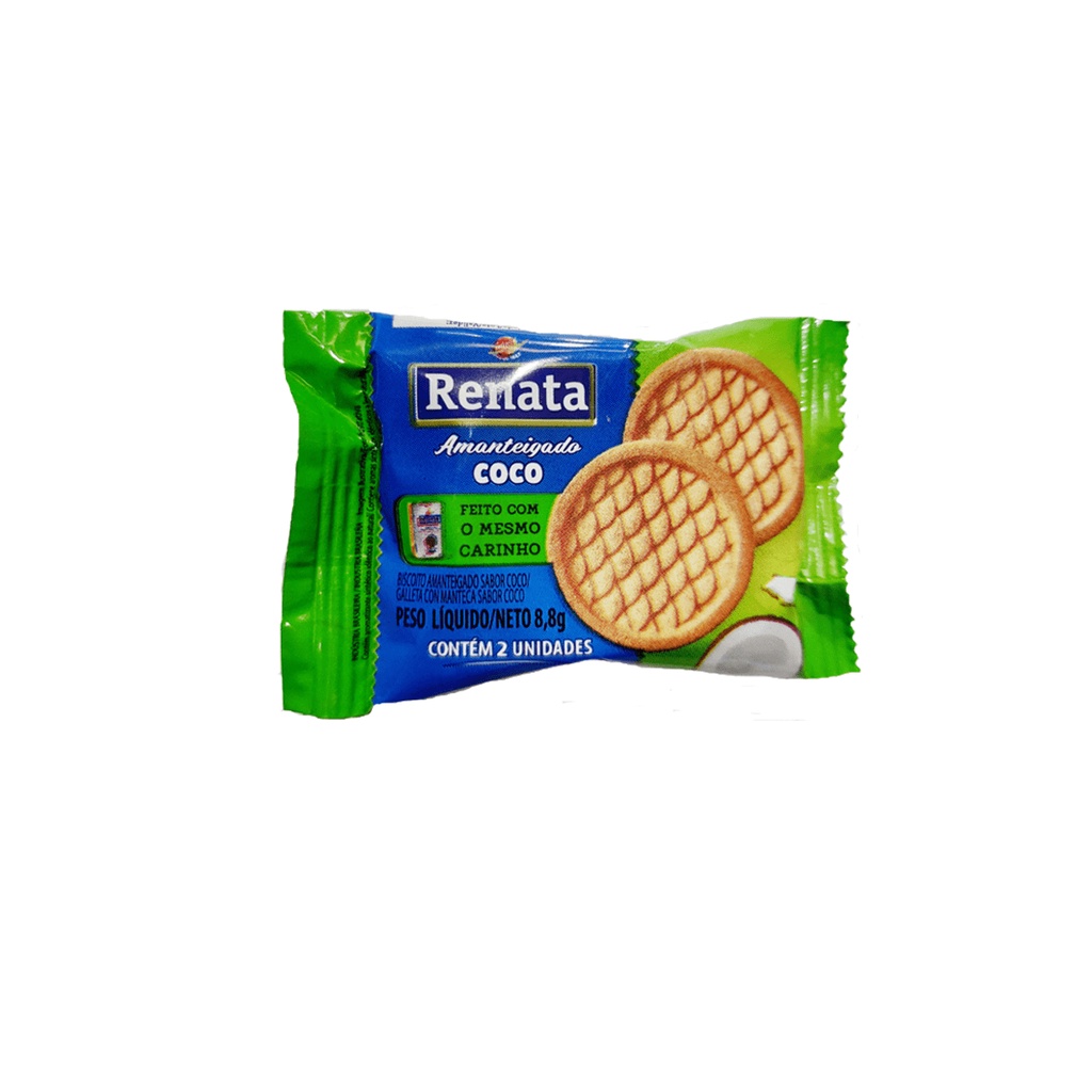 | Biscoito Amanteigado Renata 8,8G Coco Sachê C/2 UN CAIXA com 20 UN... este produto | R$ 16,99 | — | 4.9/5 | 6 |