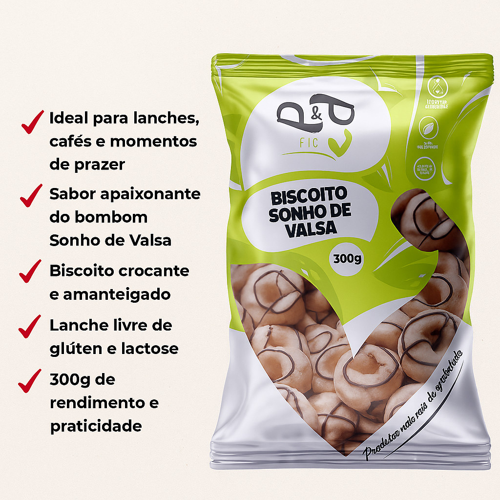 Inspirado no tradicional bombom, o Biscoito Sonho de Valsa da P&P Fit une a cremosidade do chocolate com a crocância do amendoim em uma massa amanteigada irresistível. Perfeito para lanches, cafés ou momentos especiais. Embalagem prática, segura e livre de BPA, com 300g de pura indulgência! ℹ Benefícios: ✅ Sabor inspirado no clássico Sonho de Valsa ✅ Biscoito crocante e amanteigado ✅ Perfeito para cafés, sobremesas ou presentear ✅ Embalagem prática e segura, livre de BPA ✅ Ingredientes selecionados ✅ 300g de rendimento e praticidade ℹ Ficha Técnica: ✅ Produto: Biscoito Amanteigado Sonho de Valsa ✅ Marca: P&P Fit ✅ Peso líquido: 300g ✅ Embalagem: Flexível com lacre hermético ✅ Conservação: Local seco e arejado ✅ Não contém corantes artificiais ✅ Livre de BPA