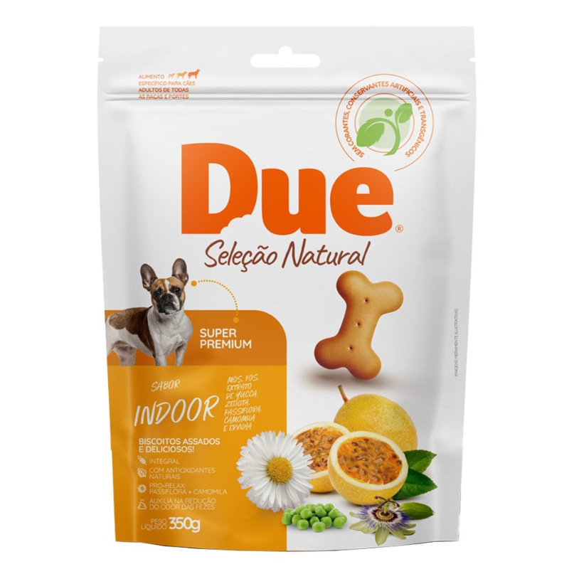 Biscoito Due Seleção Natural Indoor para Cães Adultos 350G É um alimento super premium, específico para cães adultos de todas as raças e portes. Assado e muito saboroso oBiscoito Due Seleção Natural Indoor para Cães Adultosfoi especialmente desenvolvido para cães que vivem em ambientes internos. Com uma textura crocante e saborosa, ajuda a satisfazer a necessidade de mastigar dos cães, contribuindo para a saúde bucal e evitando comportamentos destrutivos causados pelo tédio. Biscoito integral; Com antioxidantes naturais; Pro-relax: passiflora + camomila; Auxilia na redução do odor das fezes.