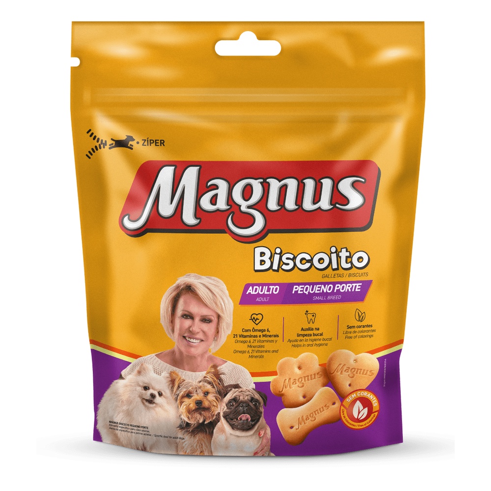 | Biscoito Magnus Adulto Porte Pequeno 400g este produto | R$ 16,99 | 26% | 4.9/5 | 11 |