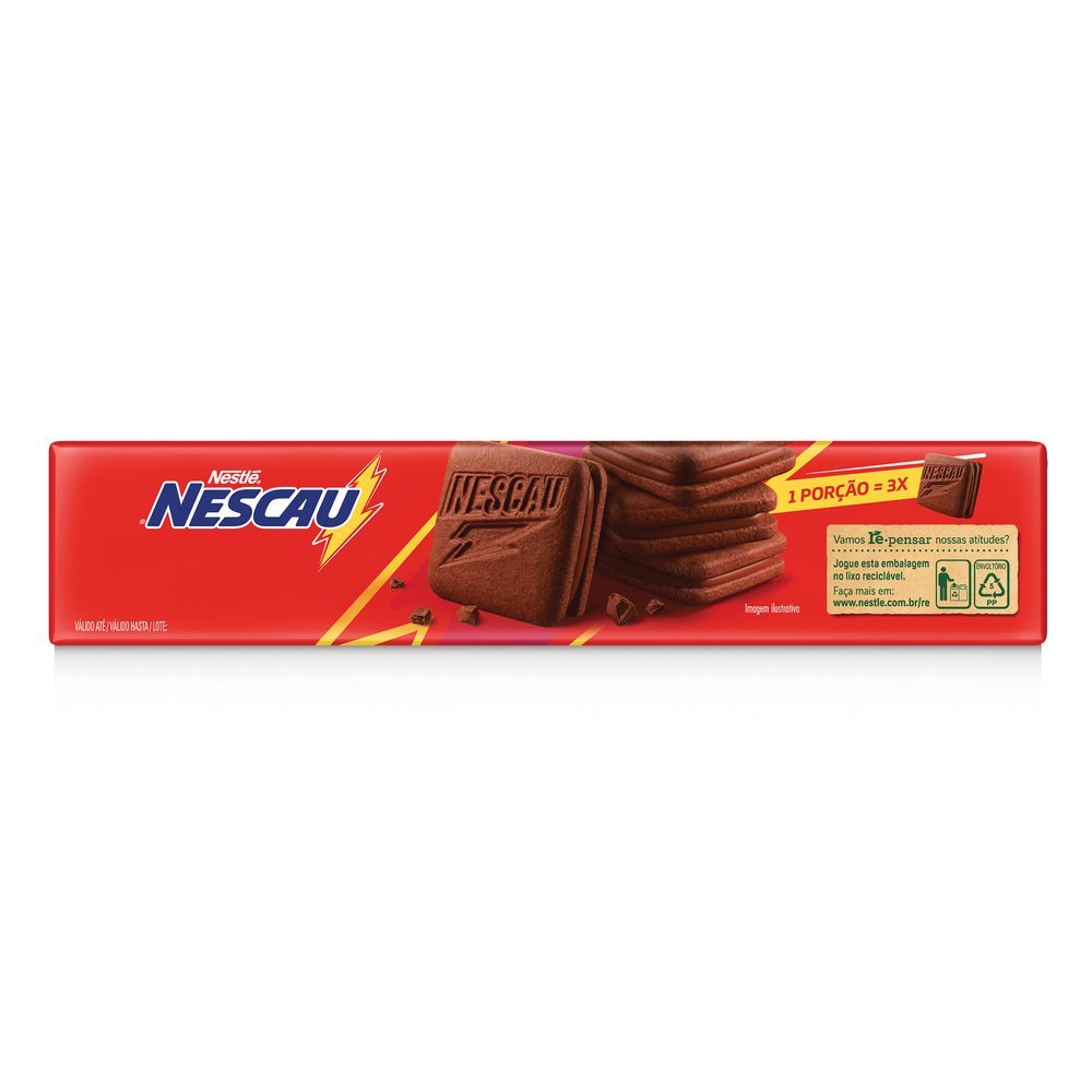 BISCOITO NESCAU RECHEADO Mais um sucesso delicioso com sabor de NESCAU®: dois biscoitos de chocolate quadradinhos, fresquinhos e crocantes envolvendo um recheio cremoso e irresistível. Ingredientes: F