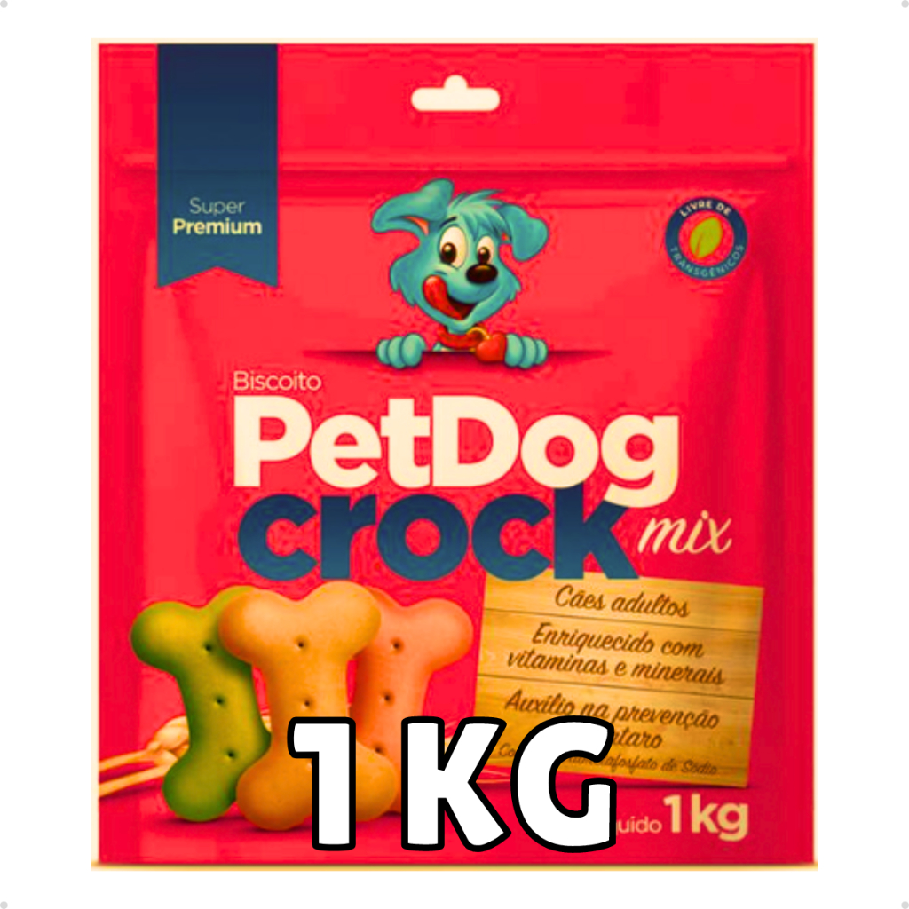 Alegre o seu cãozinho com este delicioso biscoitinho especial para raças médias e grandes! Que todo cachorro adora um biscoito não é novidade para nenhum amante de animal, não é mesmo? O biscoito PetDog Crock da linha Super Premium é sucesso entre os peludinhos! Torne o dia do seu cãopanheiro muito mais feliz com estes deliciosos biscoitos! O aroma irresistível deixará o seu amigo(a) lambendo os beiços para apreciar estes biscoitos! Benefícios do Biscoito PetDog Crock: Ótima opção como recompensa para treinamentos e adestramentos. Auxílio na prevenção do tártaro (contém Hexametafosfato de Sódio) Enriquecido com vitaminas minerais e ômega 3. Massageamento das gengivas. Alegra o seu cão. Informações Técnicas: Produto: Biscoito para Cães PetDog Crock Super Premium - Mix Todas as Raças Sabor: Padrão Tipo: Petisco Animal: Cachorros Porte: Médio e Grande Raça Específica: Não Sexo Específico: Não Itens Inclusos: 1x Biscoito para Cães PetDog Crock Super Premium - Mix Todas as Raças 1KG Embalagem: Plástico Composição: Farinha de carne de frango, farinha de trigo, óleo de frango, hidrolisado de fígado de frango, açúcar, hexametafosfato de sódio, bicarbonato de sódio, propionato de cálcio, aditivo antioxidante (BHT e BHA), vitamina A, vitamina D3, vitamina E, vitamina K3, vitamina B1, vitamina B2, vitamina B6, vitamina B12, niacina, pantotenato de cálcio, ácido fólico, cloreto de colina, biotina, sulfato de ferro, sulfato de cobre, sulfato de manganês, sulfato de zinco, iodato de cálcio e selenito de sódio. Níveis de Garantia: Umidade (Max): 100 g/kg Proteína Bruta (Min): 120 g/kg Extrato Etéreo (Min): 80 g/kg Matéria Fibrosa (Max): 25 g/kg Matéria Mineral: 50 g/kg Cálcio (Min): 1200 mg/kg Cálcio (Máx): 6000 mg/kg Fósforo (Min): 1200 mg/kg Hexametafosfato de sódio (Min): 1500 mg/kg Ômega 6: 8000 mg/kg Ômega 3: 800mg/kg Certamente o seu cachorro(a) ficará muito feliz com estes saborosos biscoitos! RECOMENDAÇÕES DIÁRIA DE CONSUMO 1- Tamanho do Animal. 2- Quantidade Diária Recomendada. Cães até 2 kg 1 biscoito por dia Cães de 2,1 kg à 5 kg 2 biscoitos por dia Cães de 5,1 kg à 10 kg 3 biscoitos por dia Cães de 10,1 kg à 20 kg 4 biscoitos por dia PERGUNTAS FREQUENTES QUANTO TEMPO CONSUMIR APÓS ABERTO? Após a abertura do biscoito, o seu cachorro(a) deverá consumí-lo em até 30 dias. Não recomendamos o consumo do mesmo após este prazo. HUMANOS PODEM COMER O BISCOITO PETDOG CROCK? Não! Os biscoitos são indicados apenas para cães de pequeno porte. O BISCOITO TEM QUE SER GUARDADO NA GELADEIRA? Não! O biscoito não precisa, necessariamente, de refrigeração. Enfatizamos que é fundamental manter o biscoito em locais secos e distante da luz do sol e do calor em geral! Também é recomendado mantê-lo distante do alcance de crianças. O BISCOITO SUBSTITUI UMA REFEIÇÃO PRINCIPAL? Não! Enfatizamos que qualquer tipo de biscoito não substitui e não deve ser consumida como refeição principal pelo seu animal. Biscoito é uma ótima opção para alegrar o seu cachorro(a). OUTROS ANIMAIS PODEM CONSUMIR O BISCOITO PETDOG CROCK? Não! O biscoito PetDog Crock é indicado apenas para cachorros de pequenos porte. Não recomendamos o consumo por outros animais, sendo restritamente proibido para ruminantes.