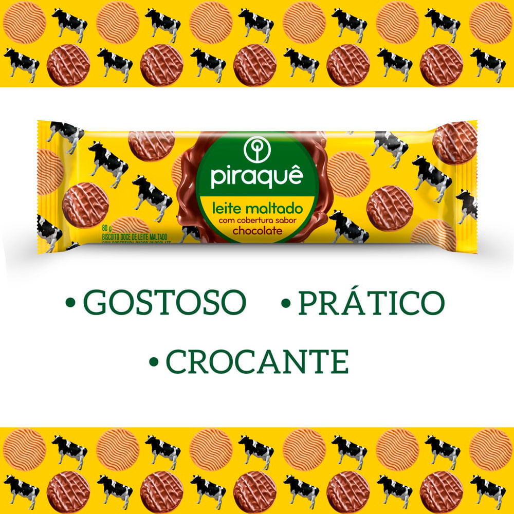 Biscoito Piraquê Leite Maltado com Cobertura de Chocolate 80g