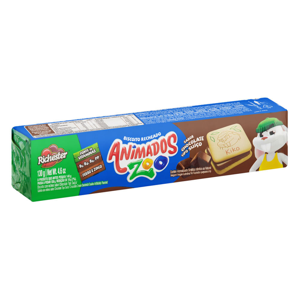 Biscoito Recheado Richester Animados Zoo Sabor Chocolate Tipo Suíço 130g