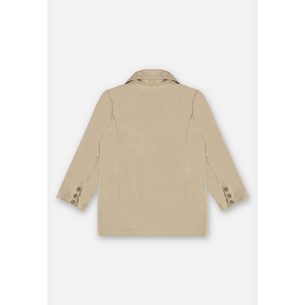 Blazer infantil masculino confeccionado em tecido de linho com elastano, garantindo conforto e muito estilo para o pequeno. A peça tem tom bege, conta com fechamento por botões e caseados frontais, detalhes de costura, lapelas frontais, recortes sutis e abertura com botões de enfeite nas mangas. Ideal para ocasiões formais ou para um look mais estiloso, sem abrir mão da praticidade e conforto. Tecido: Blazer: Linho com Elastano Composição: 89% viscose 10% linho 1% elastano Modelagem: Ampla Comprimento Mangas: Longa Forro: Não Decote: V Fechamento: Botões