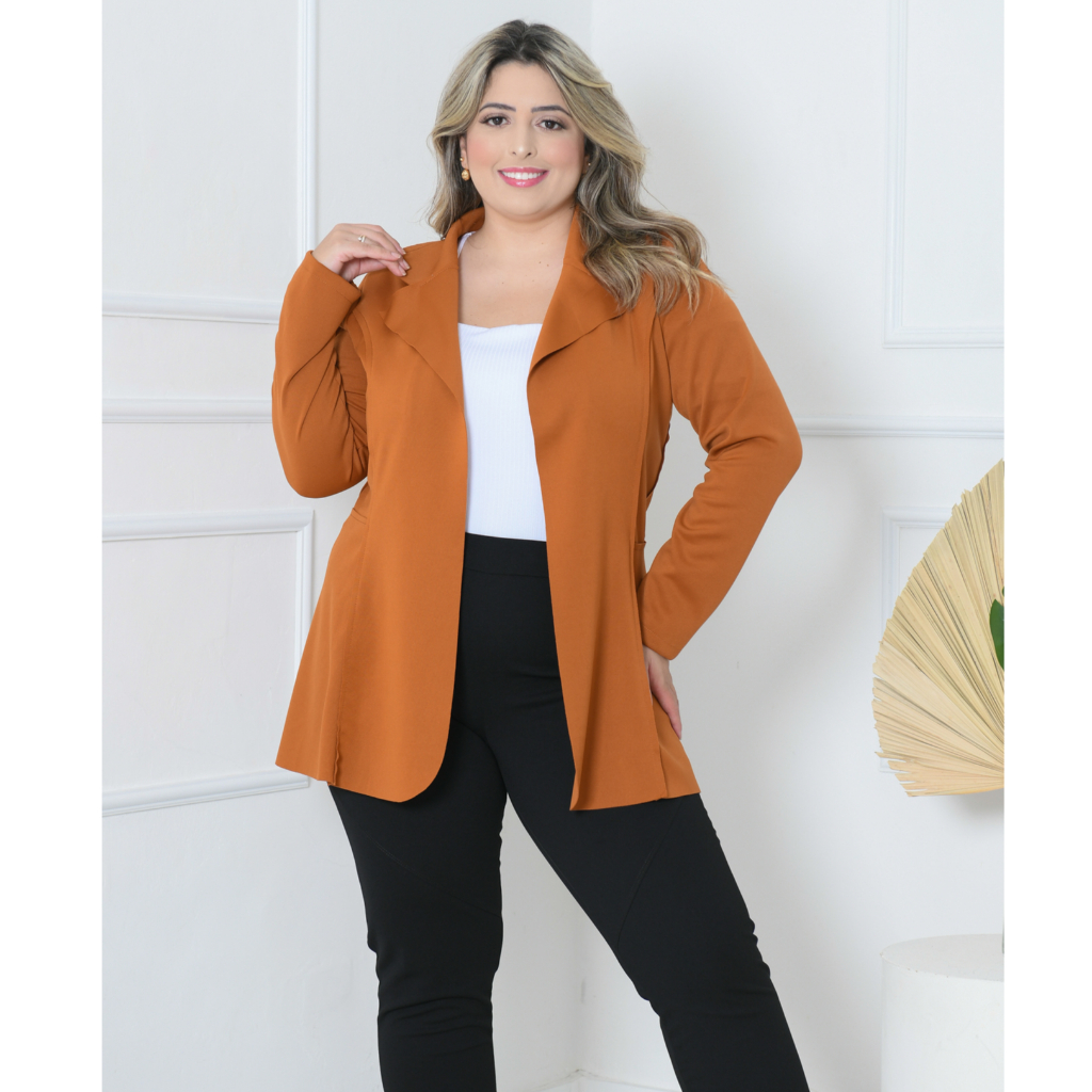 Blazer Sobretudo feminino neoprene LONGO plus size G1 G2 G3