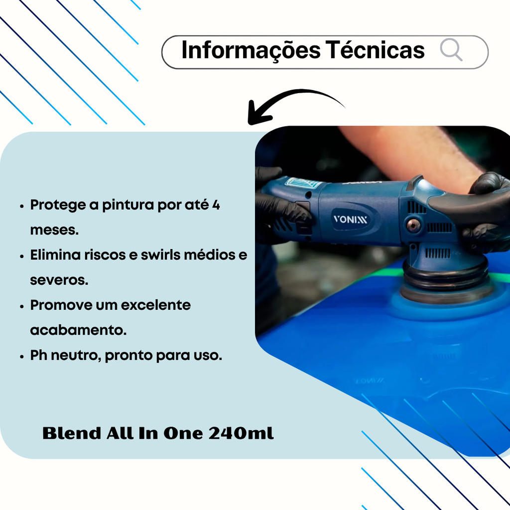 | Blend All In One 240ml 2.0 Polidor Corte Refino Lustro Carnaúba Eta... este produto | R$ 69,82 | 20% | 5.0/5 | 2 |