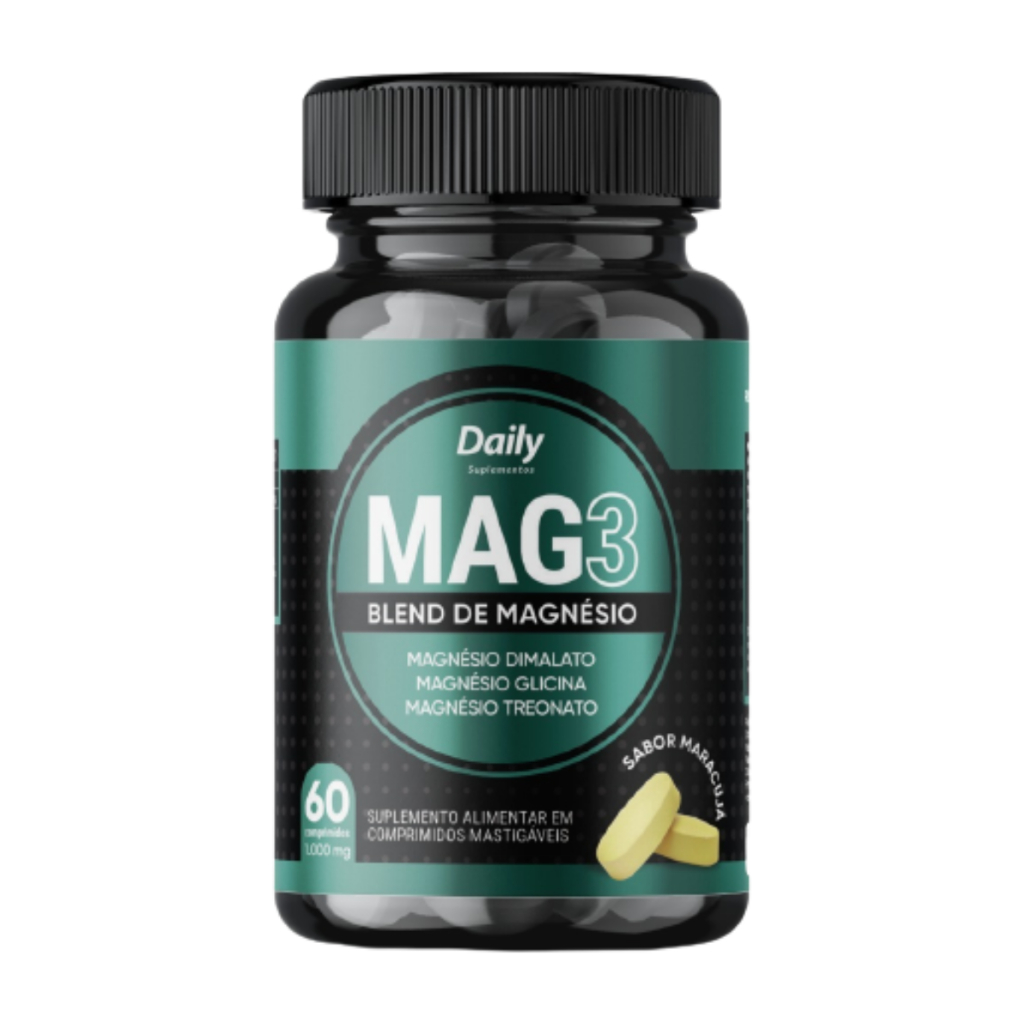 Blend de Magnésio Mag3 Original Daily Para Concentração Mastigável Sabor Maracujá 60 Comprimidos
