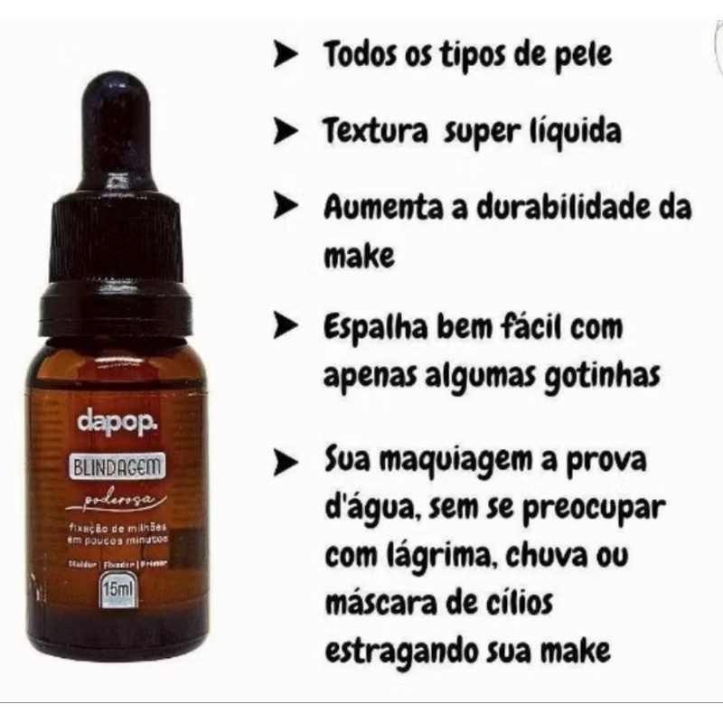 | Blindagem Poderosa Dapop 15ml -Viva 25ml Resistente água Primer Fix... | R$ 17,00 | — | 4.9/5 | 7 |