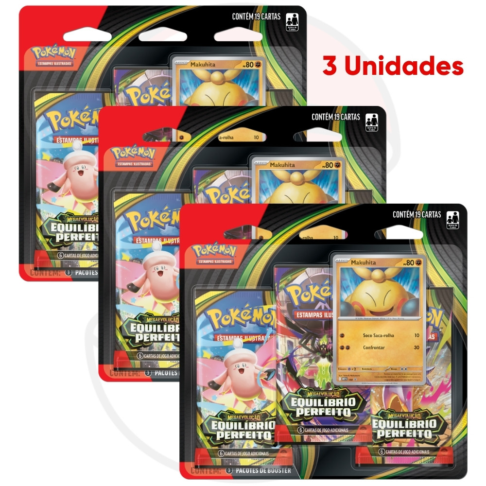 BLISTER TRIPLO MAKUHITA MEGAEVOLUÇÃO EQUILÍBRIO PERFEITO ME3 COPAG POKÉMON TCG BOOSTER CARTAS TRIPLE