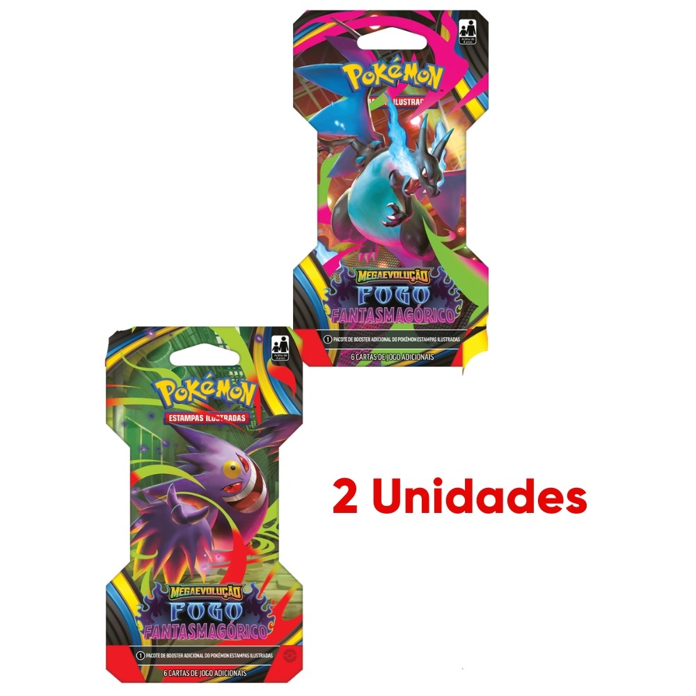 BLISTER UNITÁRIO MEGAEVOLUÇÃO FOGO FANTASMAGÓRICO ME02 COPAG CARTAS POKÉMON BOOSTER PACOTE TCG MEGA