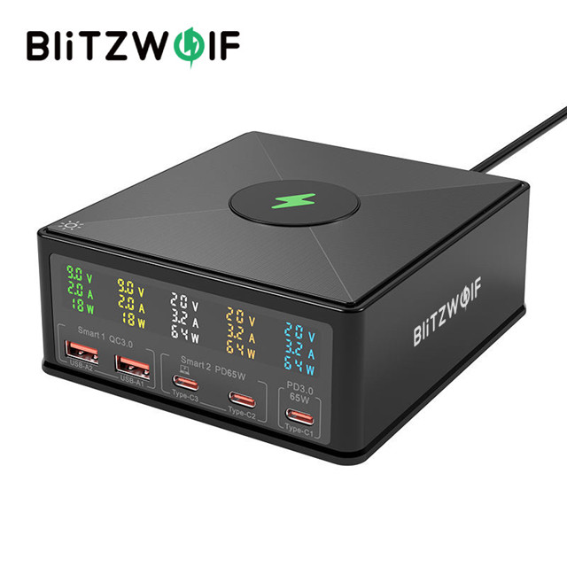 BlitzWolf ® 868H 160W 5 Portas USB PD Desktop Charger Dual-A QC3.0 + PD65W Tipo-C + 65W PD3.0 Com 15W 10W 7.5W 5W Carregador Rápido Sem Fio