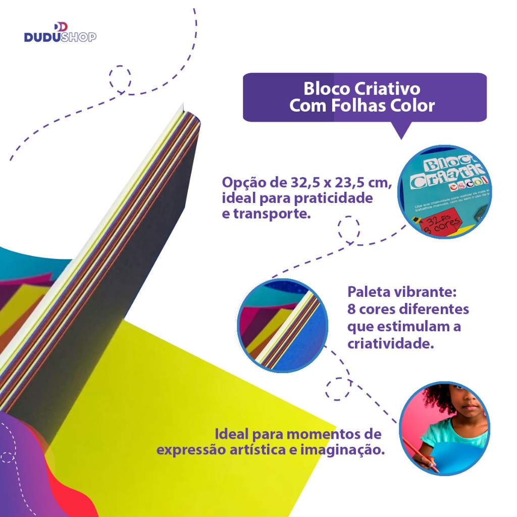 O Bloco Criativo com Folhas Color Set é ideal para quem deseja soltar a imaginação e explorar a criatividade. Com 32 folhas, sendo 8 cores diferentes, oferece uma paleta vibrante que estimula a criação de desenhos, anotações e projetos artísticos. Cada folha possui uma textura de alta qualidade, proporcionando uma experiência de escrita e pintura agradável, além de ser resistente e versátil para diversas técnicas de expressão artística. Perfeito para crianças, estudantes e adultos que buscam um material acessível e prático para seus momentos de inspiração. MEDIDAS: A3 - 42 X 29,7CM 32,5 X 23,5CM