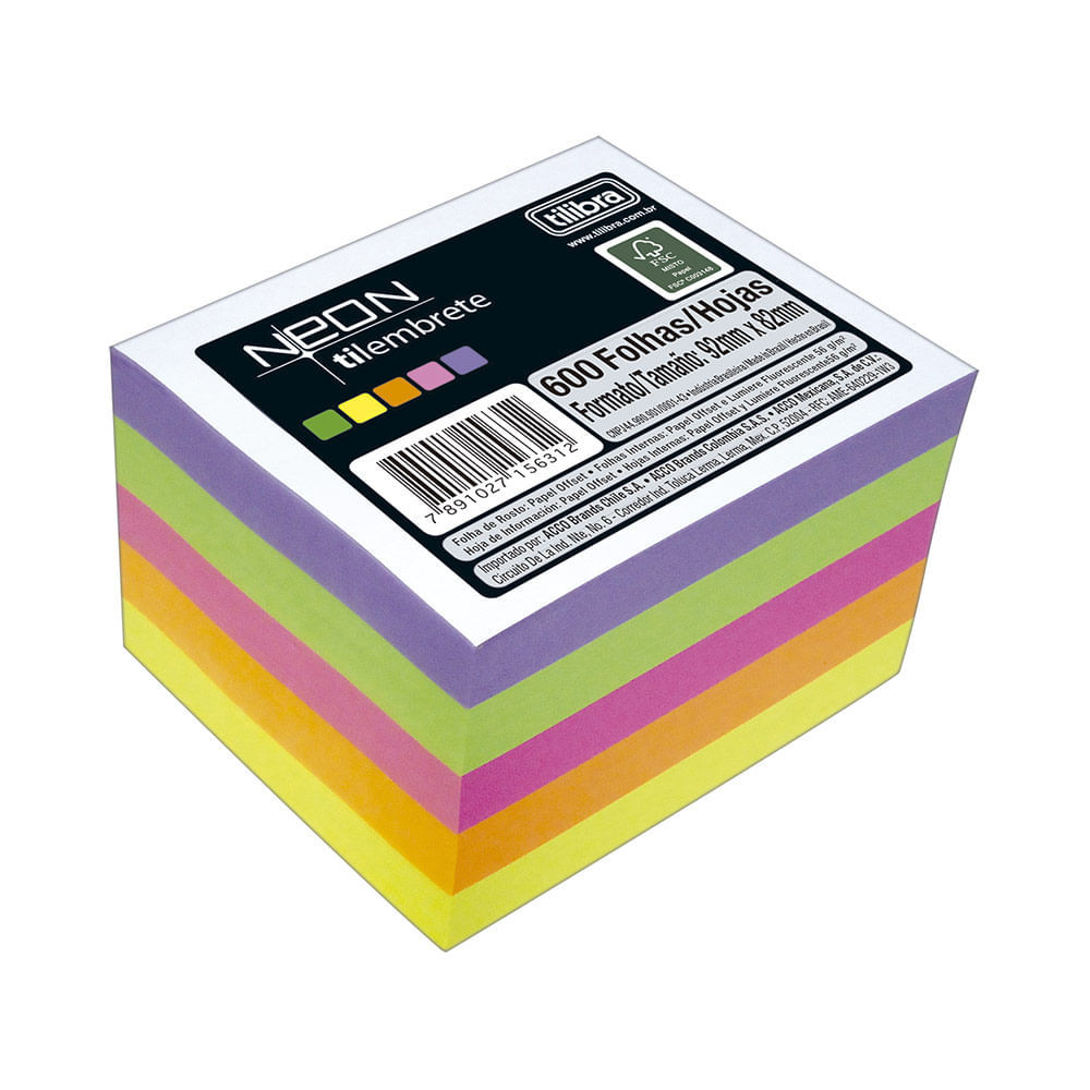 | Bloco de Anotações Tilibra Cubo 5 Cores Neon com 600 Folhas 92x82mm este produto | R$ 34,99 | — | 5.0/5 | — |