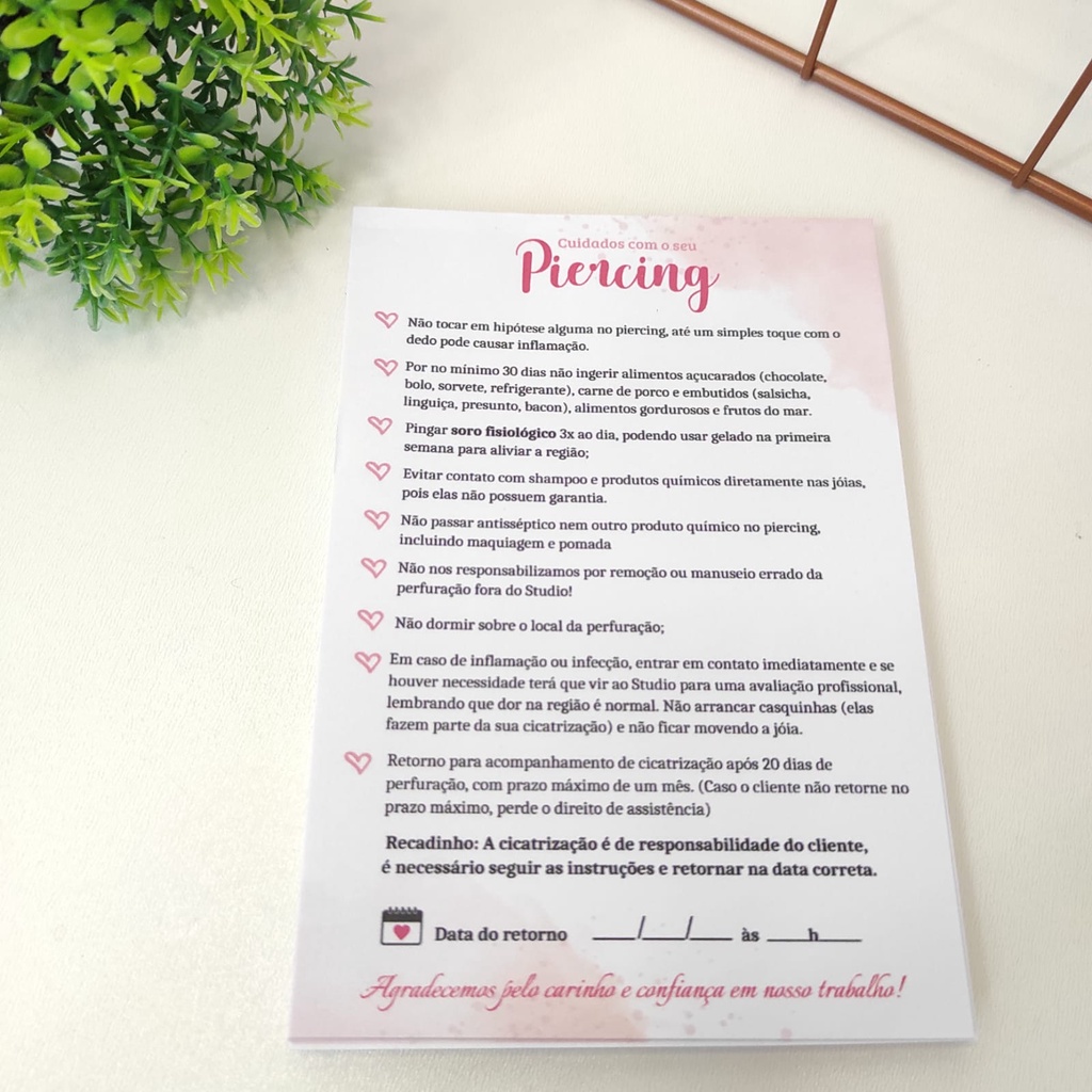Encontre o item Bloco de Cuidados/Orientação Piercing na subcategoria Artigos de Arte (de Papelaria), disponível na Shopee Brasil por R$ 14,99. Nota 5.0 de 5 na Shopee e 4 unidades vendidas, este produto se destaca pelo excelente custo-benefício.