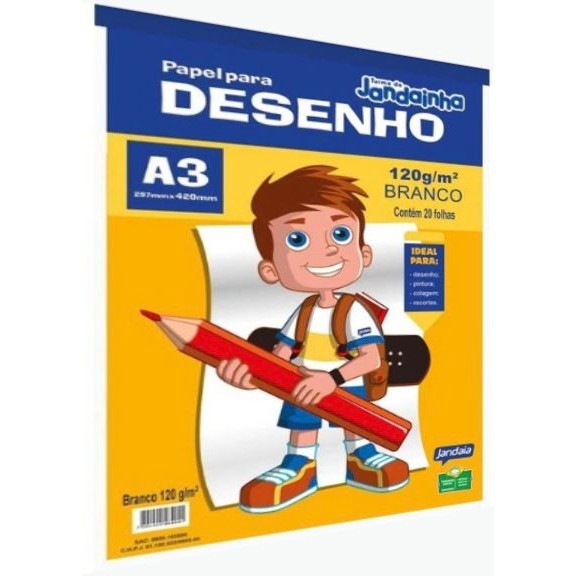 Bloco de Desenho A3 Branco 120g 20 Folhas Basic Art Jandaia Este bloco de desenho A3 Basic Art da Jandaia, contendo 20 folhas brancas de 120g, é um item essencial para artistas, estudantes e entusiastas que buscam qualidade e versatilidade em seus trabalhos artísticos. Benefícios Qualidade Ideal para Diversas Técnicas: Com uma gramatura de 120g, as folhas são suficientemente encorpadas para suportar uma variedade de materiais, como lápis de cor, grafite, giz de cera, e até técnicas mais úmidas como marcadores à base de água ou guache leve, sem que a tinta vaze ou enrugue o papel facilmente. Tamanho A3 Generoso: O formato A3 (297 x 420 mm) oferece uma área de trabalho ampla, ideal para projetos maiores, ilustrações detalhadas, esboços de arquitetura, ou simplesmente para quem gosta de ter mais espaço para a criatividade fluir. Branco Puro para Cores Vibrantes: A cor branca do papel realça as cores dos materiais utilizados, garantindo que seus desenhos e pinturas apresentem tons vibrantes e fiéis. Quantidade Conveniente: Com 20 folhas por bloco, você tem um bom suprimento para diversos projetos, sejam eles escolares, artísticos ou profissionais, sem a necessidade de reposição constante. Especificações Técnicas: Marca: Jandaia; Referência: 67134/77; Codigo:479629.; Características do Produto:Bloco de Desenho A3 Branco 120G 20 Folhas Basic Art Jandaia.; Medidas: 297mm x 420mm; Embalagem: Bloco com 20 Folhas; Com mais de 70 anos de tradição no mercado, a Jandaia é referência nacional na produção de materiais escolares e de escritório. Reconhecida pela qualidade, criatividade e compromisso com a educação, a marca se destaca por oferecer produtos que aliam funcionalidade, design moderno e durabilidade. Presente no dia a dia de milhões de brasileiros, a Jandaia investe constantemente em inovação para atender às necessidades de crianças, jovens e adultos, criando itens que estimulam a organização, a escrita e o aprendizado. Do universo escolar ao ambiente profissional, a Jandaia está presente em cada detalhe com excelência e confiança. Escolher produtos Jandaia é optar por uma marca com história, responsabilidade e dedicação à criação de soluções práticas e inspiradoras para todas as fases da vida.