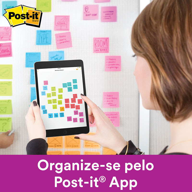 Bloco de notas super adesivas Post-it refil Verde Sorte 76x76mm 90 folhas - 3M O Bloco Adesivo Amarelo Post-it® foi inventado por um pesquisador da 3M em 1980 e, desde então, conquistou o mundo! A inovação não parou por aí e outros tamanhos, formatos e cores vieram para facilitar ainda mais o nosso dia a dia. O Refil do bloco adesivo Post-it® da 3M, é especialmente produzido para ser utilizado nos Suportes Post-it® e tem um formato que lembra uma “sanfona”. Esse formato especial permite que ao puxar uma folha adesiva, você sempre tenha outra sempre à mão, retirando uma folha por vez de forma fácil e prática. Suas folhas são reposicionáveis, ou seja, possuem adesivo de qualidade 3M, que permite que sejam retirados e recolocados, sem danificar papéis ou outras superfícies, sem deixar resíduos do adesivo e sem perder a eficiência na fixação. Traga mais cor ao seu dia a dia e personalize sua mesa de trabalho ou anotações com blocos adesivos na cor limão neon. Você anota todos os seus compromissos e lembretes, classificando-os por cor. São 90 folhas adesivas por bloco. Possui 2x mais adesão do que o bloco original Post-it® amarelo. Post-it® é perfeito para levar para qualquer lugar e chamar a atenção para as atividades na área de trabalho, na escola ou em casa. Detalhes: - Tamanho: 76 x 76mm - Ideal para anotar compromissos, tarefas, recados e tudo mais que você precisar - Reciclável, adesivo com base vegetal - Contém um bloco com 90 folhas. - O refil para suportes sistema puxa fácil Post-it são ótimas para retirada de uma nota por vez com apenas uma mão - Organização garantida sempre com o bloco refil e suporte de nota Post-it - Todos os blocos de notas adesivas Post-it são recicláveis. Detalhes do App: O Post-it App traz a simplicidade das Notas Adesivas Post-it para o seu smartphone ou tablet. Se você usa Notas Adesivas Post-it para colaboração ou para a tomada de notas pessoais, o App melhora sua produtividade e organiza suas ideias. Basta capturar as notas com a câmera, ou criar notas diretamente no seu dispositivo. Organize, refine e ajuste suas ideias no layout do App. Em seguida, compartilhe com amigos e colegas de trabalho, ou exporte para seus aplicativos favoritos e serviços de nuvem incluindo PowerPoint, Excel, PDF, Dropbox, entre outros. Os recursos do App Post-it: - Capture mais de 200 notas individuais Post-it de uma vez com sua câmera. - Desenhe, apague, digite e mude a cor das suas notas usando as ferramentas de edição. - Organize seu caminho: Agrupe suas ideias por pensamento ou simplesmente organize-as em uma grade. - Combine seus arquivos: Colete e combine ideias em várias sessões. - Compartilhe: Suporta PowerPoint, Excel, PDF, Dropbox, entre outras.