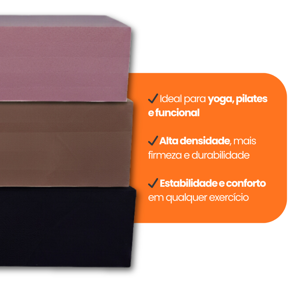 🧘 Bloco de Yoga em E.V.A – 20x11x7cm Mais estabilidade, conforto e segurança para sua prática! O bloco de yoga funciona como uma extensão do corpo, ajudando a melhorar a postura, facilitar movimentos e evitar lesões. É perfeito para iniciantes e também para quem já pratica e quer evoluir nas posturas. ⭐ Benefícios do Bloco de Yoga -Leve e portátil -Tamanho compacto -Material resistente e de alta densidade -Não amassa e não deforma -Confortável ao toque -Facilita movimentos e melhora a flexibilidade -Auxilia na correção da postura -Proporciona mais segurança nas práticas -Pode ser usado também em pilates e meditação -Ideal para exercícios iniciantes e avançados 🧩 Como usar Alongamentos sentados: sente-se no bloco para facilitar a inclinação do tronco e aumentar a flexibilidade. Pose do pombo: use o bloco no osso do quadril para ajudar no alinhamento e na inclinação da pelve. Pose da ponte: coloque o bloco entre as coxas para alinhar os joelhos e ativar músculos internos. Posições sentadas (ex.: borboleta): apoie os joelhos nos blocos para reduzir a tensão e trazer conforto. Movimentos avançados: use para elevação do corpo, garantindo altura extra para mãos ou pés.