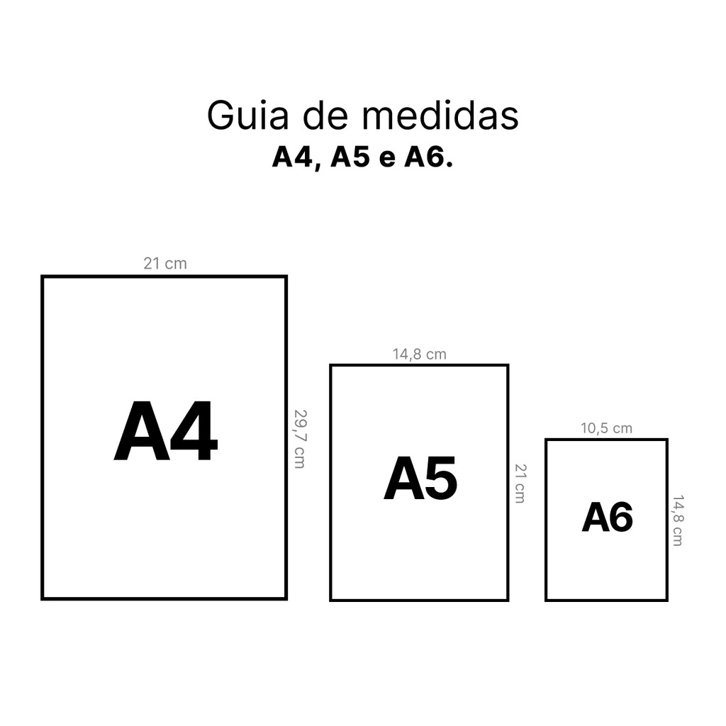 Produzido no Brasil pela Paperbrands®, utilizando papel reflorestado de alta qualidade e impresso com tinta ecológica (livre de metais pesados). Tipo do papel: Ivory Gramatura: 90g Quantidade de folhas: 80 Formato/dimensões: A4 - 21 x 29,7 cm A5 - 14,8 x 21 cm A6 - 10,5 x 14,8 cm Cor do papel/miolo: Creme Cor da impressão/miolo: Sem impressão Textura do papel/miolo: Levemente texturizada Material da capa: Papel Cartão Triplex 250g Material da contracapa: Cartão Laminado Cinza 1mm Composição: Celulose Livre de Ácidos: Sim Colado na massa: Sim Validade: Indeterminada Garantia: 90 (noventa) dias contra defeitos de fabricação Conservação: local seco e arejado Imagens meramente ilustrativas. As cores podem variar de acordo com o seu monitor/smartphone. Não recomendado para crianças menores de 3 anos. Em caso de impressão, consulte antes o manual e/ou fabricante da impressora. A embalagem pode variar. Pode haver variação de cor, gramatura e cor de impressão de lote para lote.